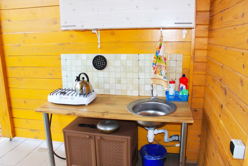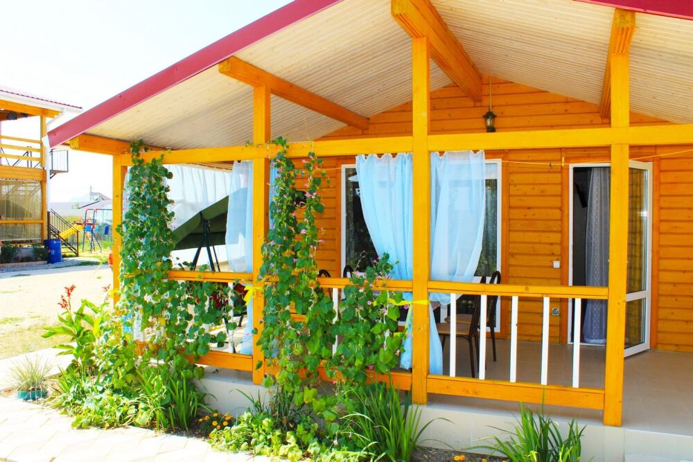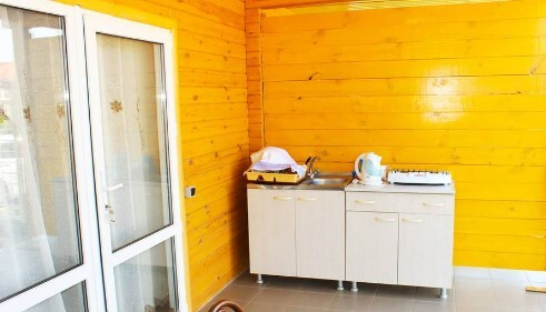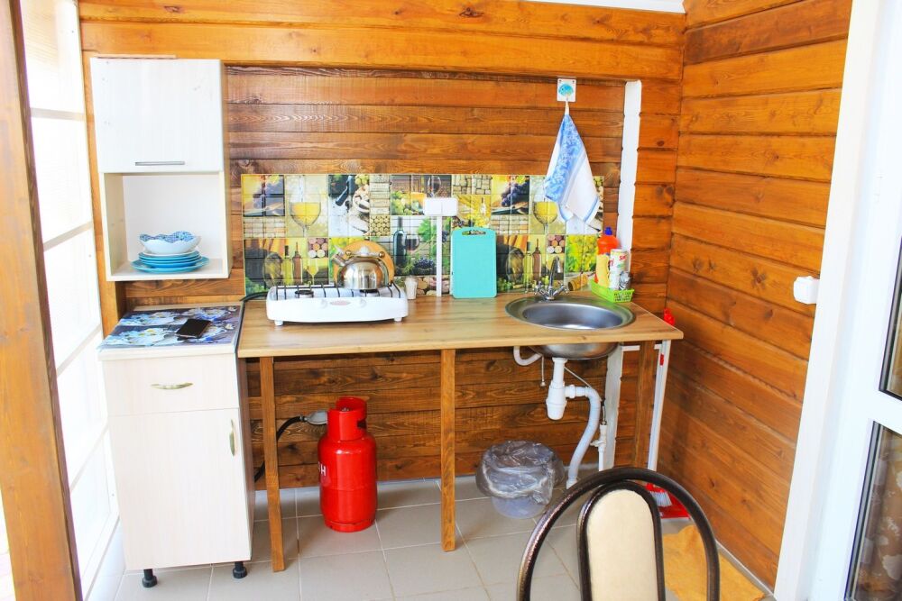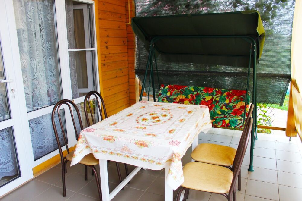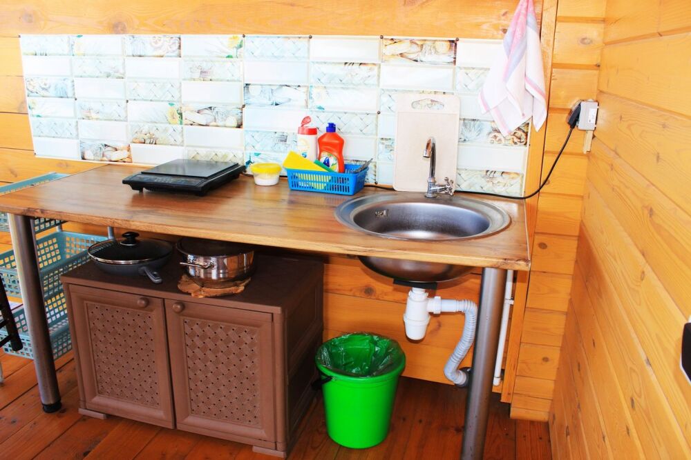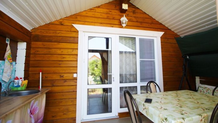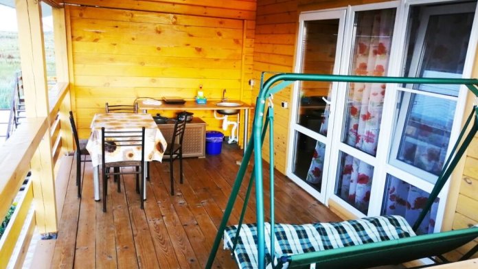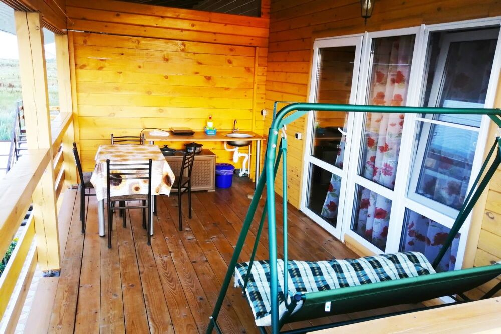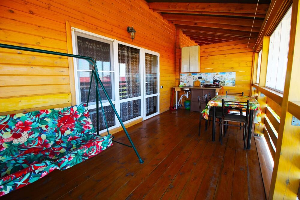 Все домики и номера имеют просторную террасу с качелями и мини-кухней, а внутри у каждого стоит большой полноценный холодильник с морозильной камерой.
