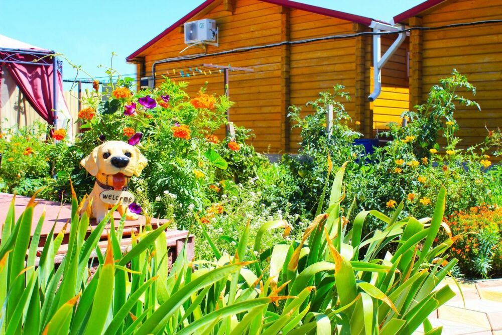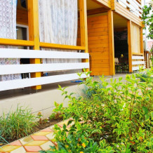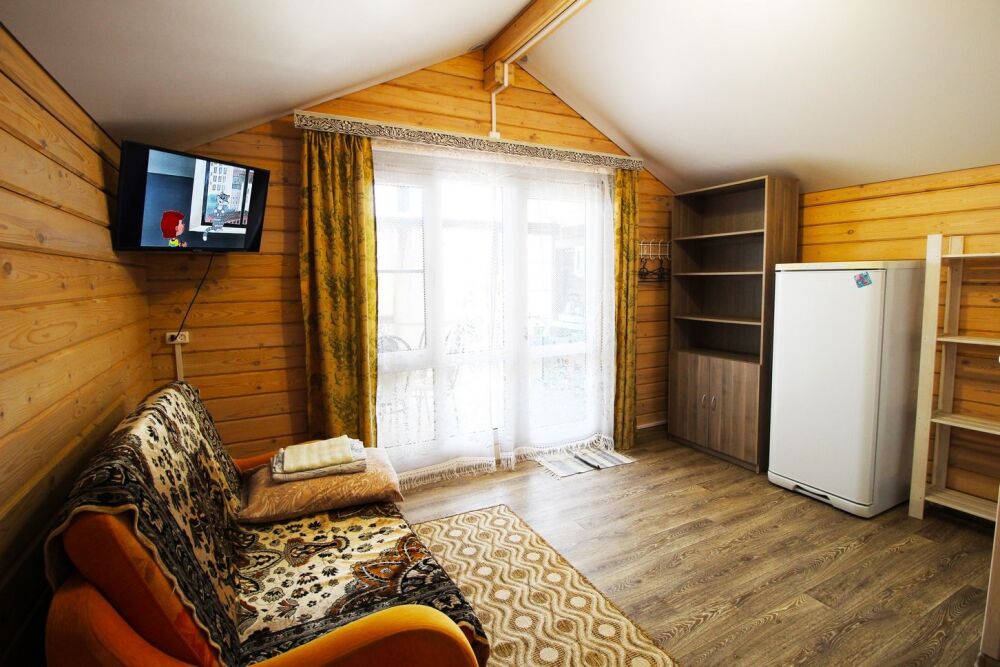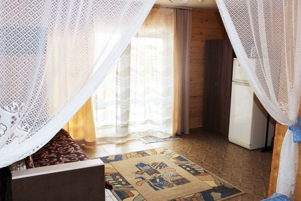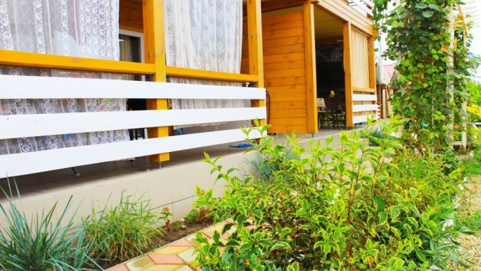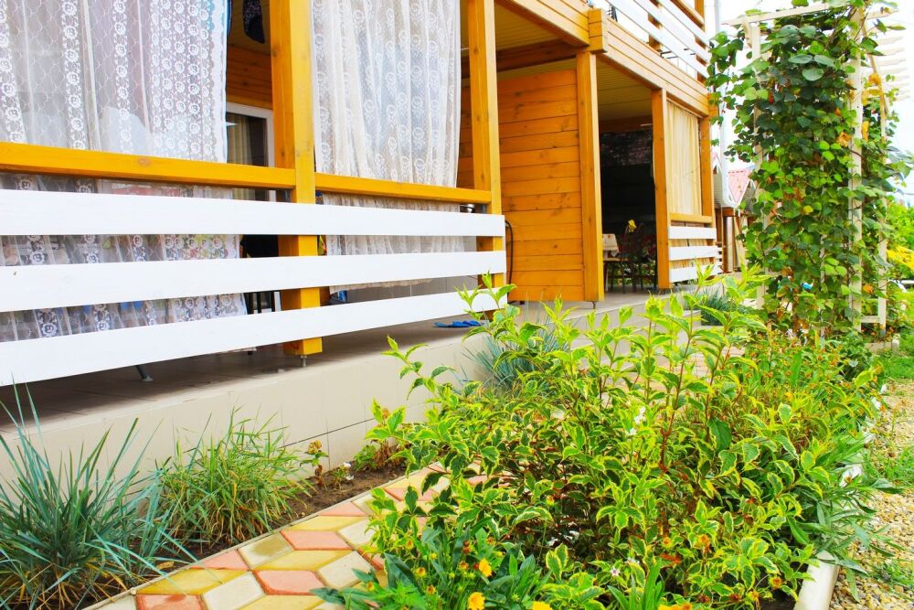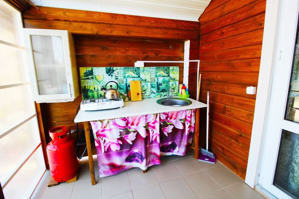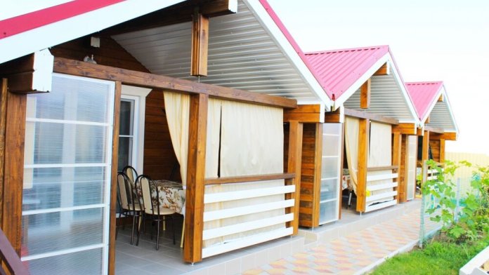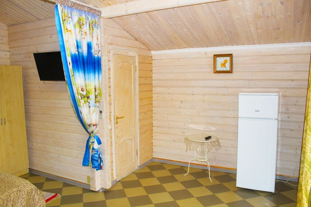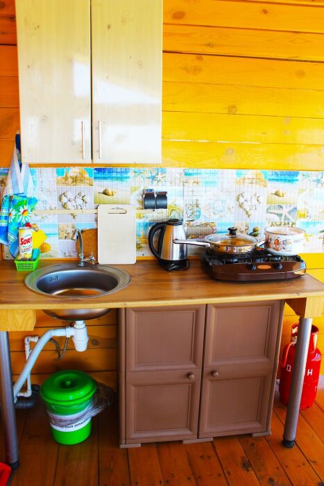 Все домики и номера имеют просторную террасу с качелями и мини-кухней, а внутри у каждого стоит большой полноценный холодильник с морозильной камерой.