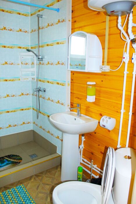 Несмотря на то, что в каждом номере есть свой санузел с душевой, на территории есть 2 дополнительные уличные душевые, в которых всегда теплая вода, нагретая солнцем.