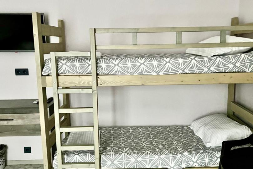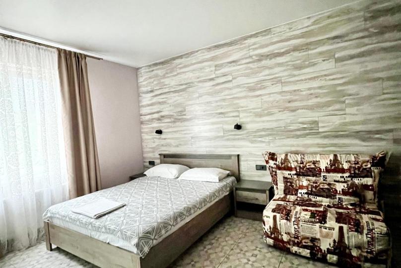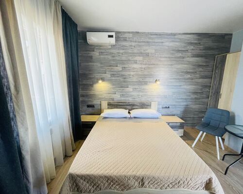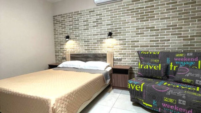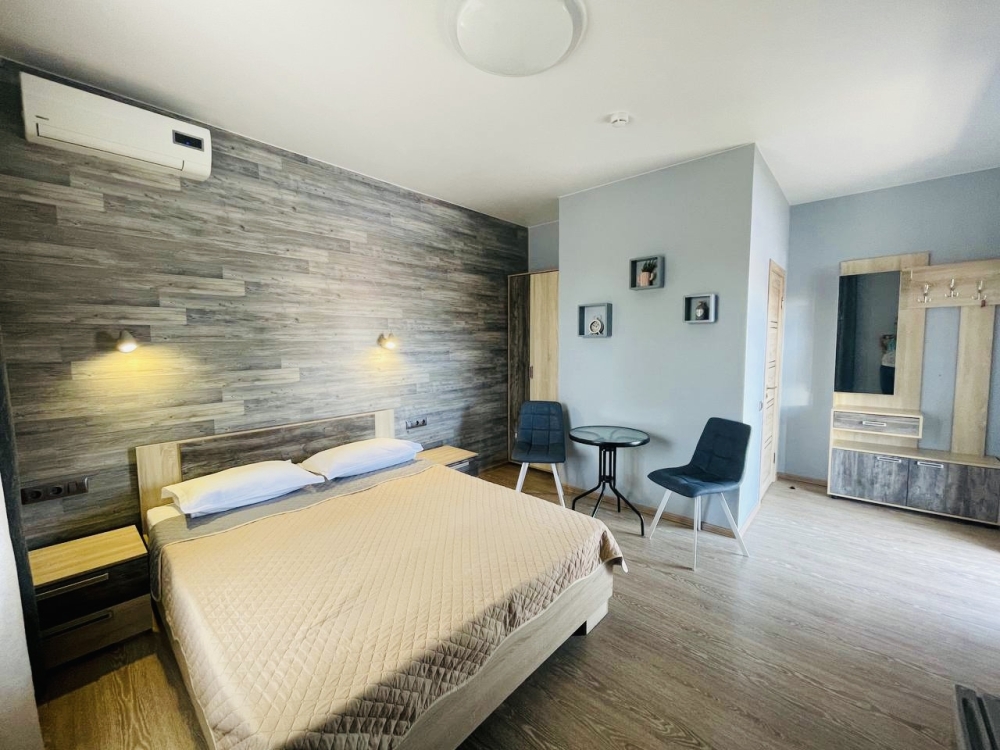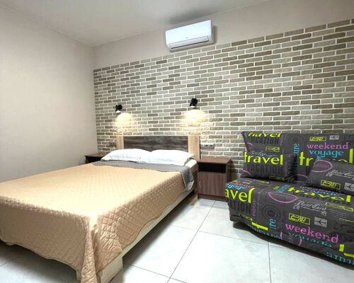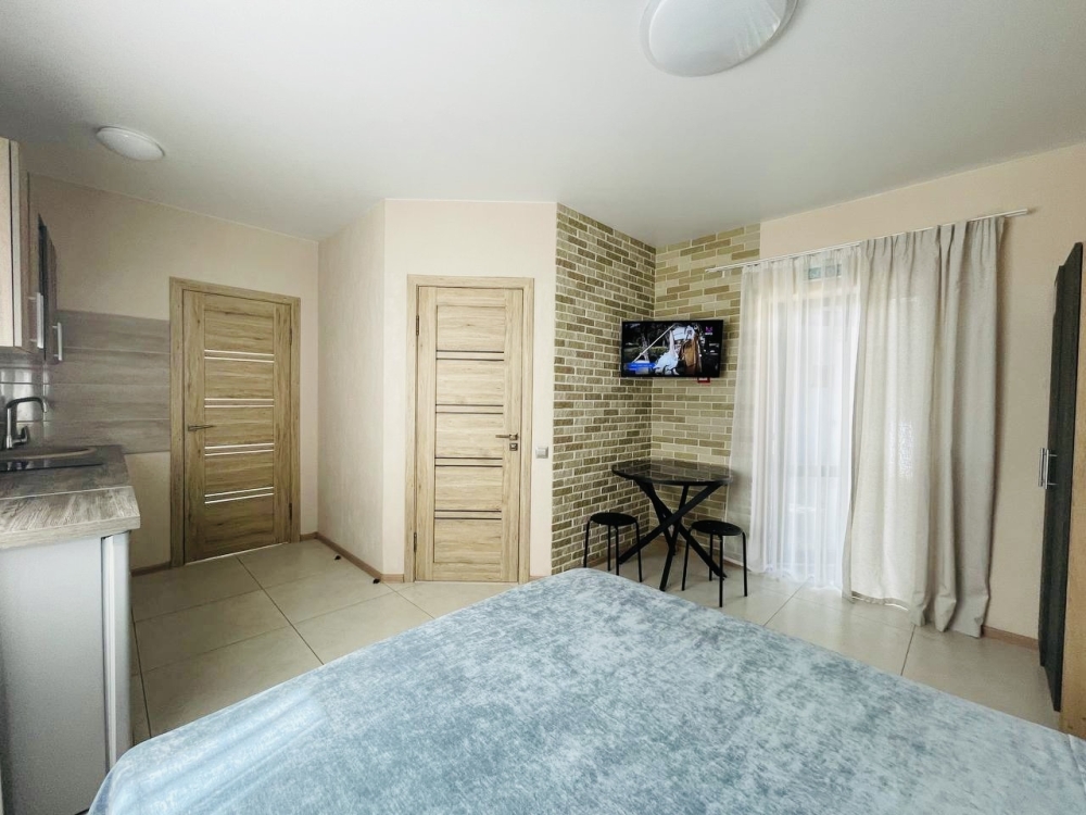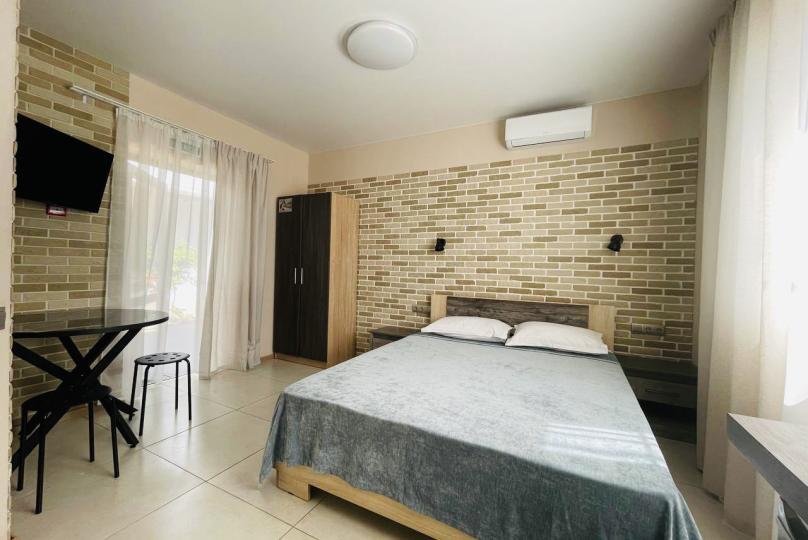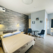 Однокомнатный номер состоит из просторной комнаты с большой двуспальной или двумя отдельными односпальными кроватями.