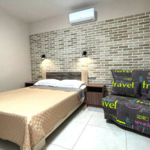 В нашем гостевом доме есть номера как для больших семей, так и для любителей уединенного отдыха. В каждом номере имеется кондиционер, ЖК телевизор, холодильник, платяной шкаф, душевая комната и туалет. В номерах, расположенных на 2 этаже, есть балкон.