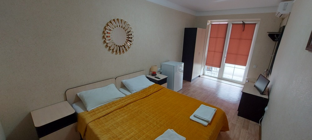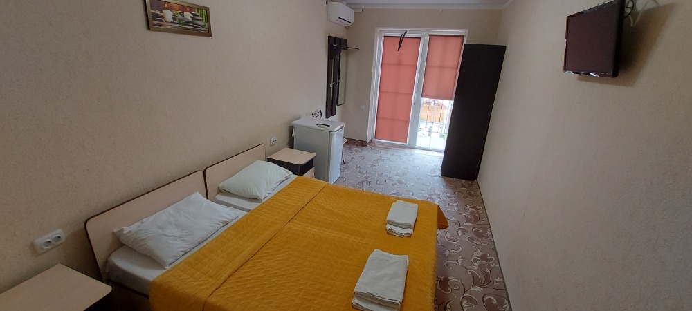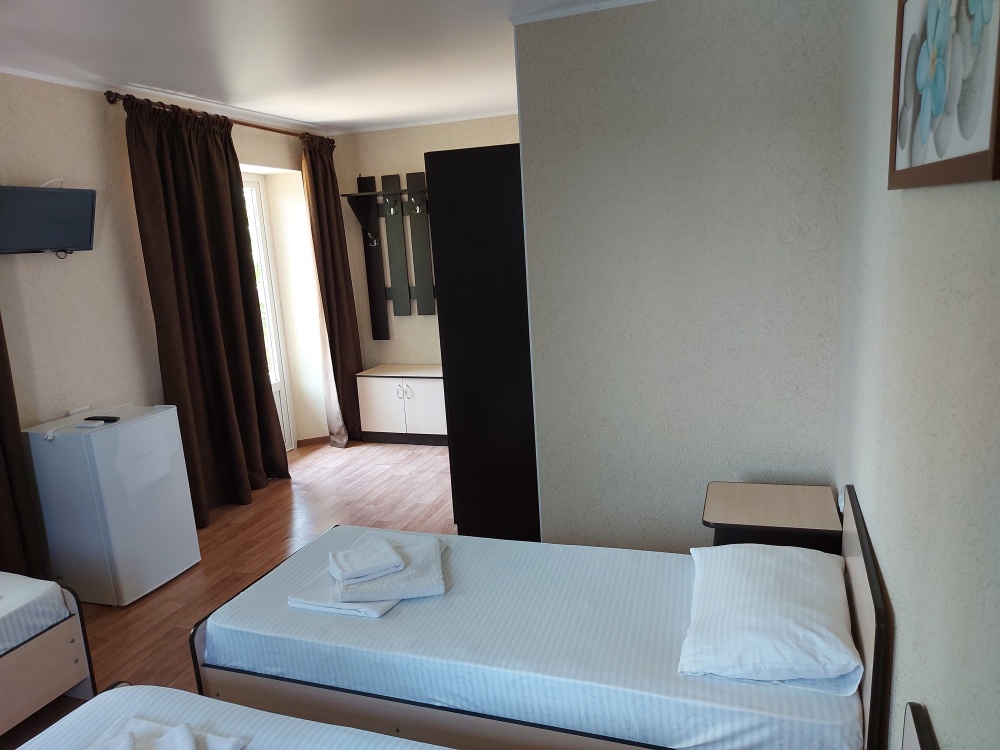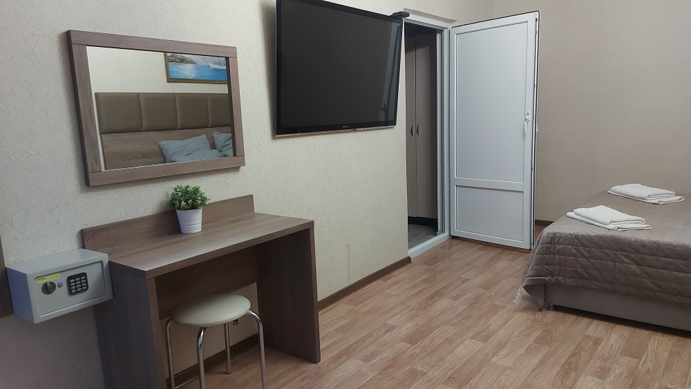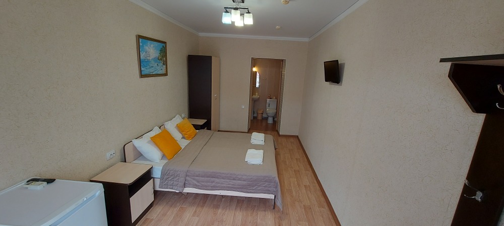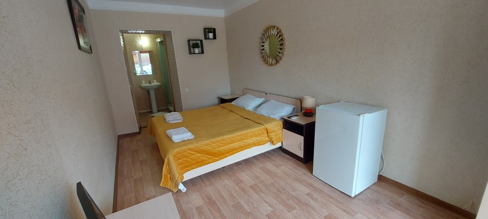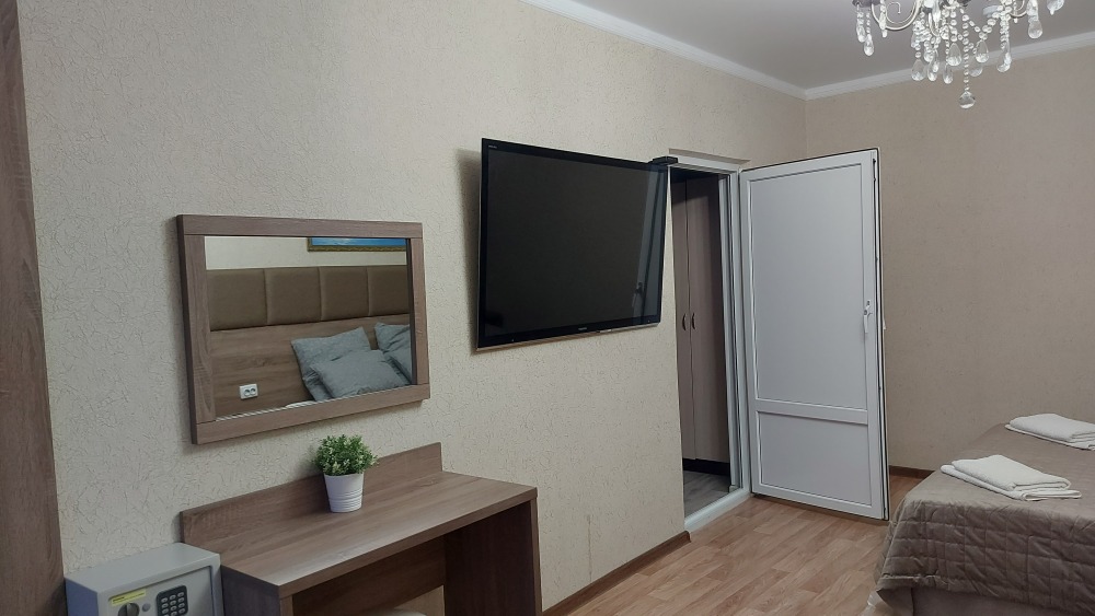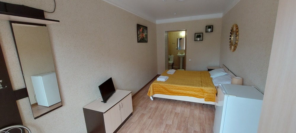 Каждый номер нашего гостевого дома оснащен всем необходимым для комфортного проживания гостей: климат-контроль, отдельная душевая с санузлом, холодильник, телевизоры смарт TV, цифровое телевидение, сейф, фен, чайник, посуда.