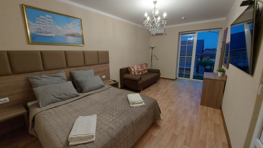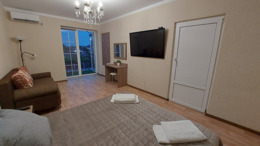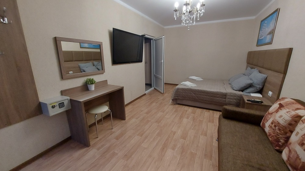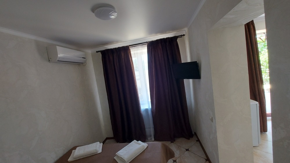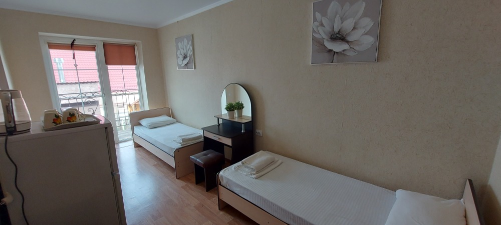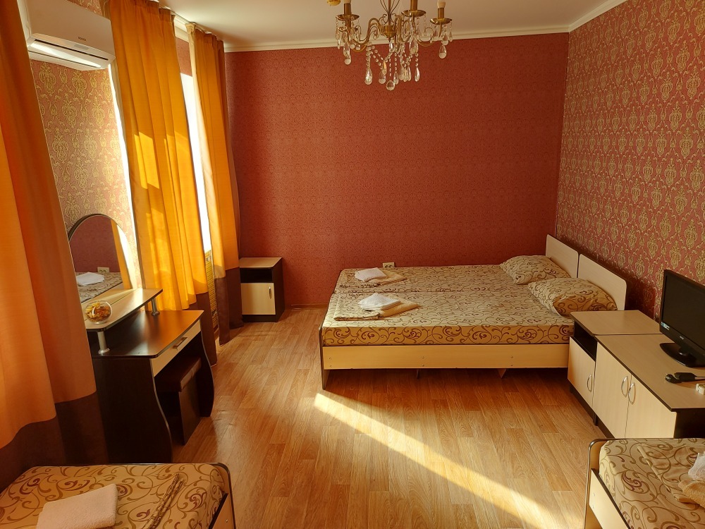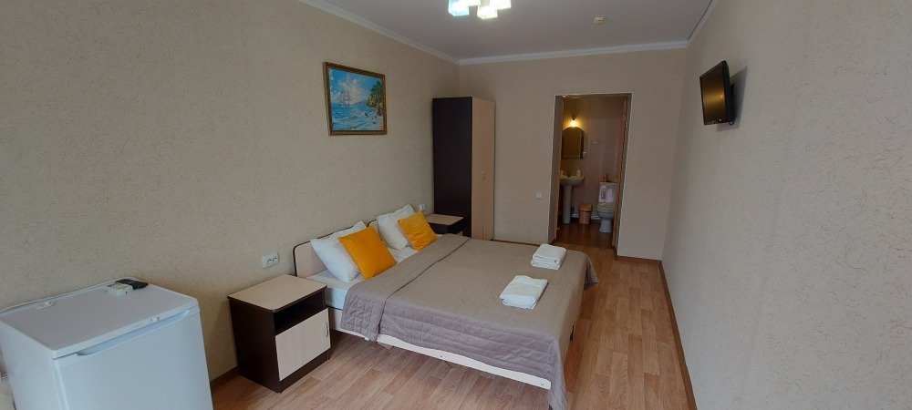 Каждый номер нашего гостевого дома оснащен всем необходимым для комфортного проживания гостей: климат-контроль, отдельная душевая с санузлом, холодильник, телевизоры смарт TV, цифровое телевидение, сейф, фен, чайник, посуда.