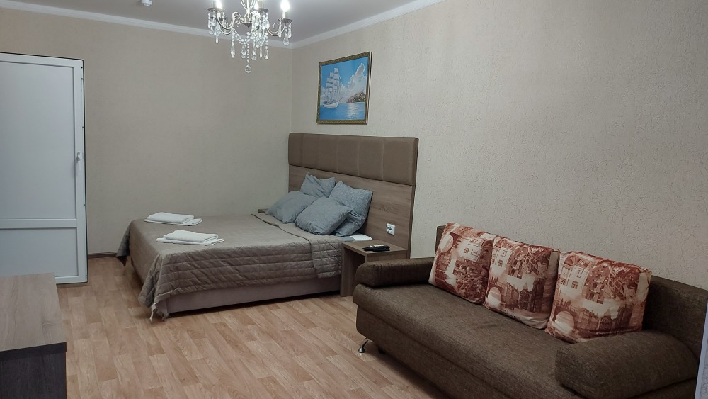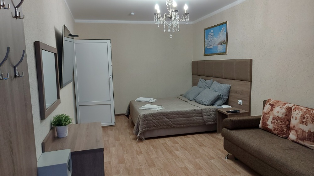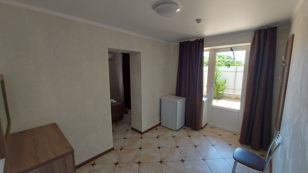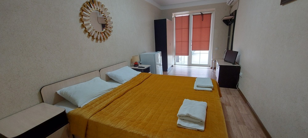 Четырехместный однокомнатный номер с прихожей. Оборудован всем необходимым для комфортного отдыха и проживания. Возможно установка доп.места (платно +500руб/ночь). Номер находится на втором этаже. Номер укомплектован кондиционером, смарт TV 43», цифровое тв, Wi-Fi, холодильник, эл.чайник, посуда, фен, сейф.