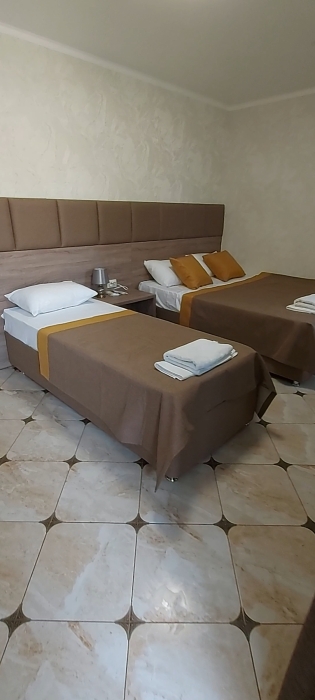 Трехместный, комфортный номер. Оборудован всем необходимым для комфортного отдыха и проживания. Возможно установка доп.места (платно +500руб/ночь).