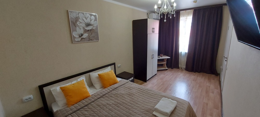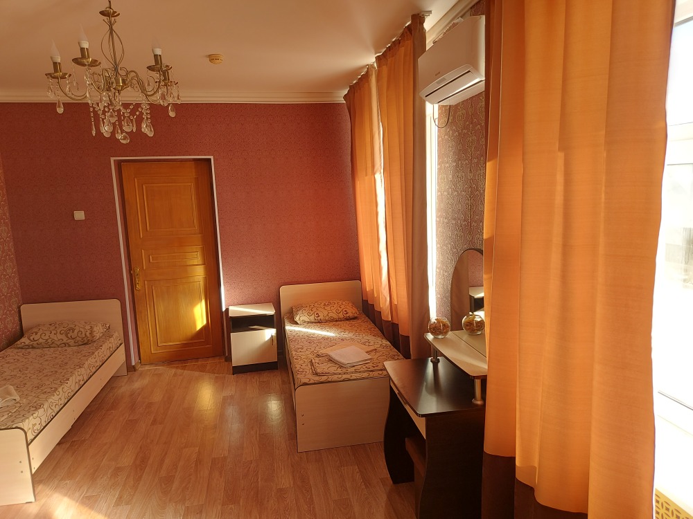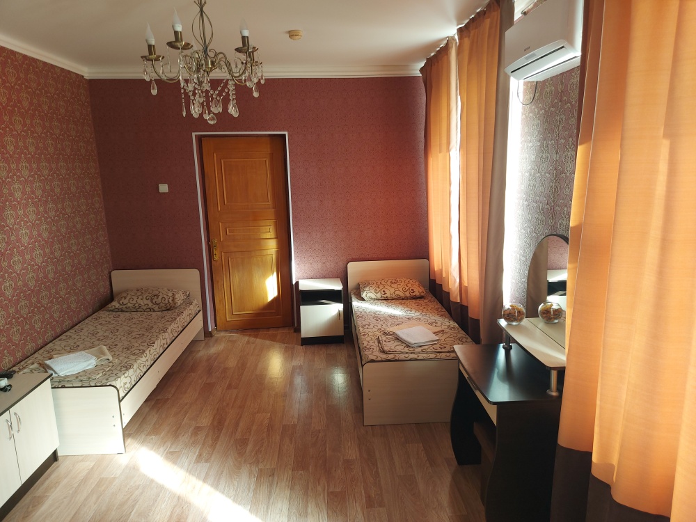 Двухместный, двухкомнатный, комфортный номер. Оборудован всем необходимым для комфортного отдыха и проживания. Возможно установка доп.места (платно +500руб/ночь). Номер находится на первом этаже. Номер укомплектован кондиционером, смарт TV 43», цифровое тв, Wi-Fi, холодильник, эл.чайник, посуда, фен, сейф. Санузел с душевой кабиной. Курение в номере строго запрещено (штраф и выселение)! На территории отеля «Центральный» расположен большой стационарный двухуровневый бассейн с подогревом на 100 тонн чистейшей воды. Возможно проживание с питомцами, по согласованию (платно +500руб/ночь).