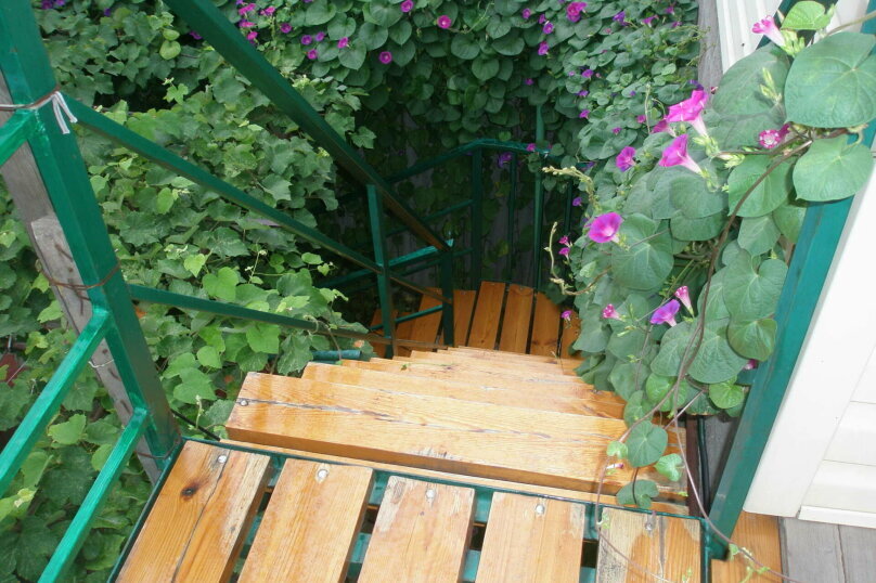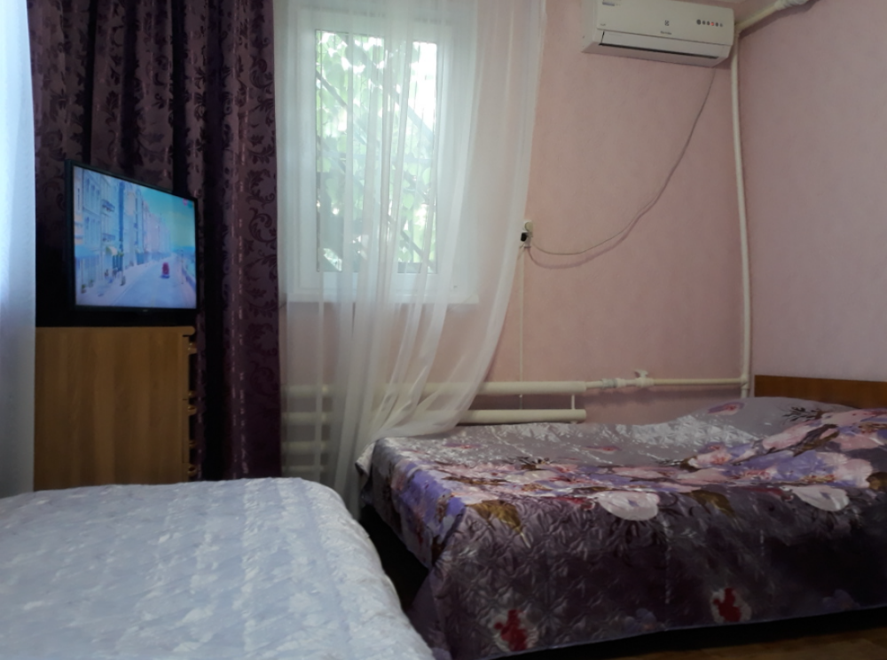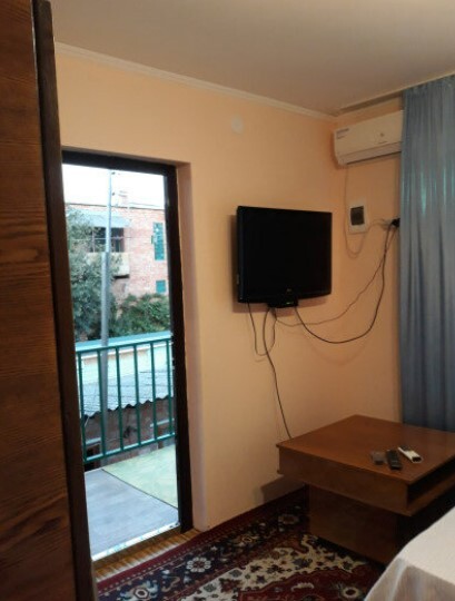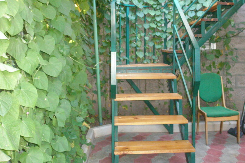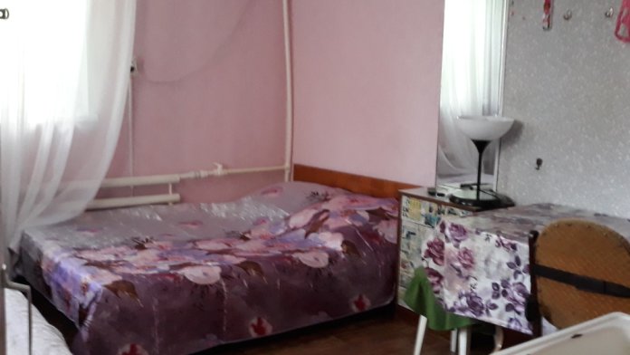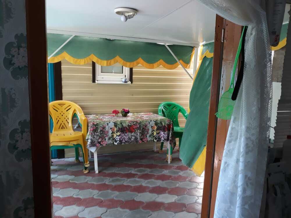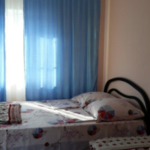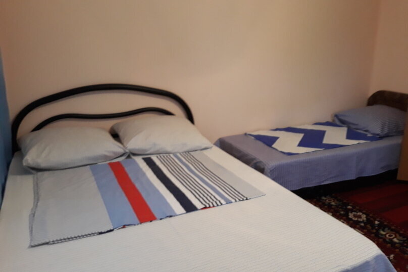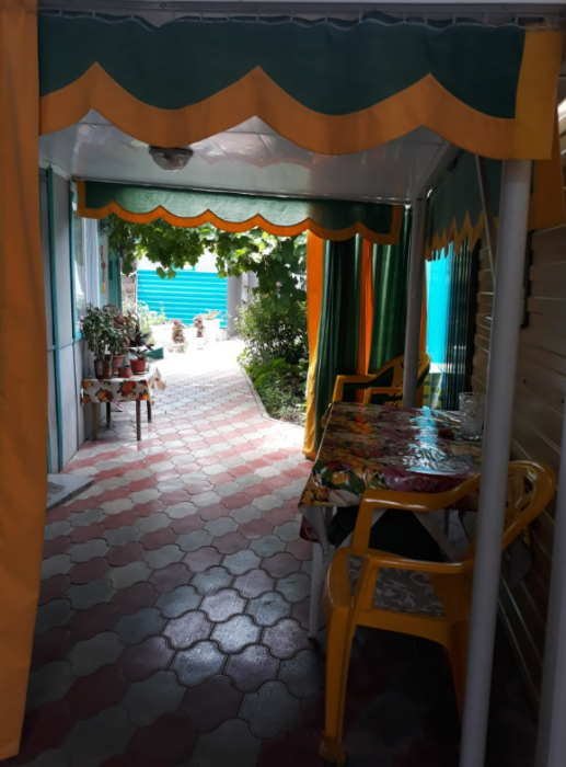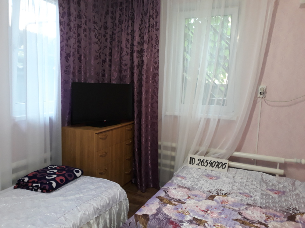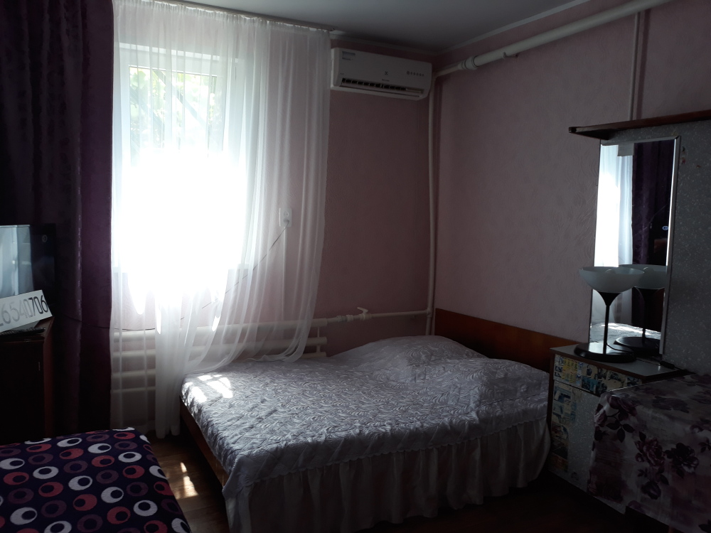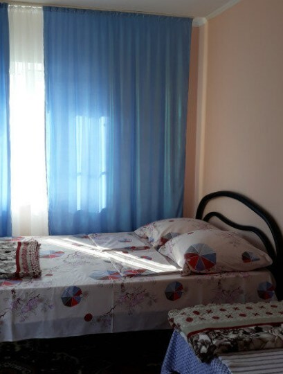 Номера на три человека, на втором и первом этаже гостевого дома. В каждом номере два спальных места, двуспальная кровать и односпальная. Шкаф для одежды, журнальный стол. Рядом санузел с душевой кабиной. Предоставляется постельное белье и полотенца. На первом этаже кухня находится прямо в номере. Кухня для второго этажа ,- летняя, находится внизу, под навесом, окруженным плотными шторами, спасающими от солнца. На кухне есть всё необходимое для приготовления пищи: газовая печь, СВЧ-печь, мультиварка, индивидуальный холодильник, электрическая духовка, посуда. В номерах кондиционеры, в общем пользовании стиральная машинка, фен, гладильная доска, утюг. Стоимость указана для одного номера.