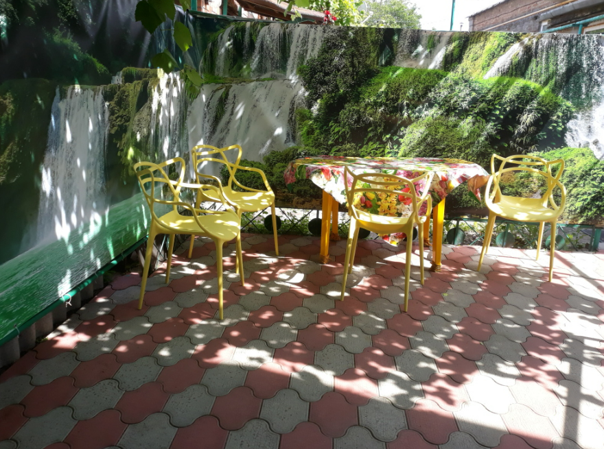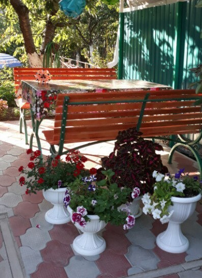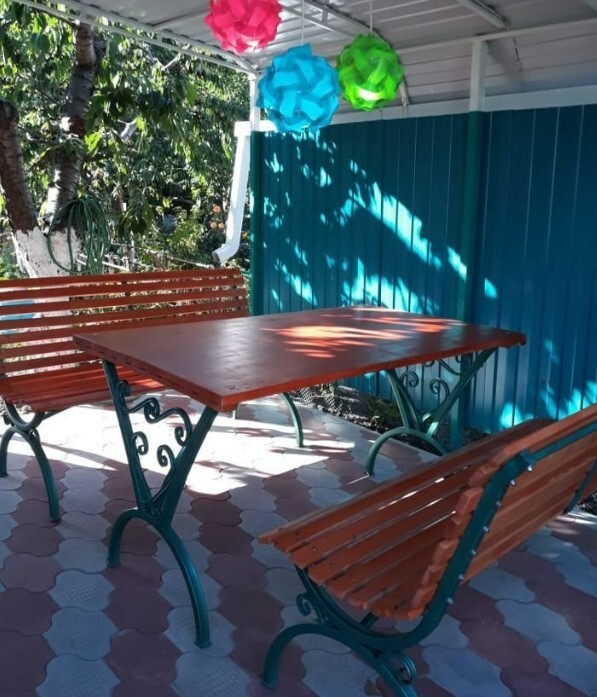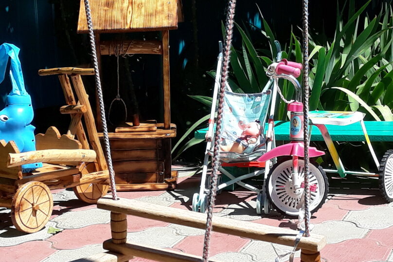 Во дворе три беседки, мангал с комплектом шампуров и решёток. Виноградники, цветники, множество роз, детская площадка с песочницей и игрушками, качелька. Предоставляется при необходимости детская кроватка, коляска- трость, обеденный столик для малышей. Имеется самокат и беговел. Верхние фото - номер на втором этаже. Фото внизу- это номер на первом этаже.