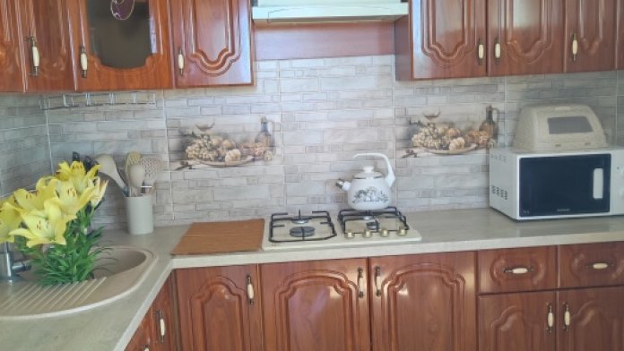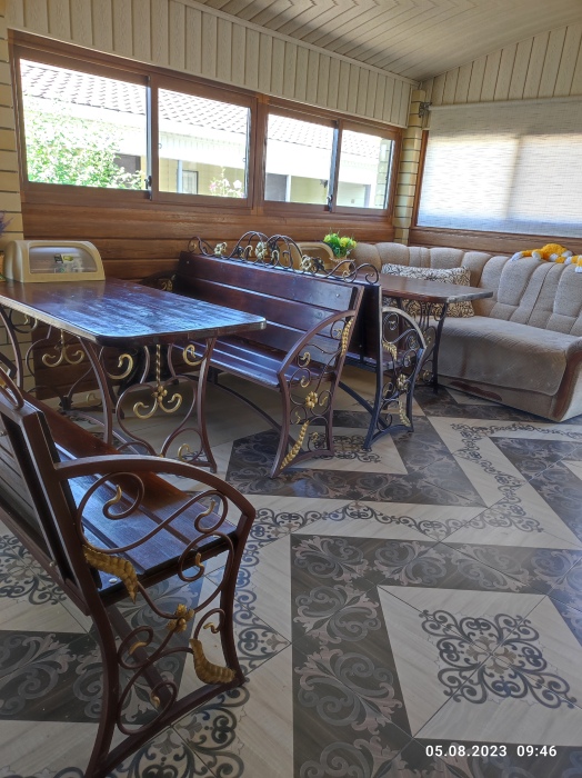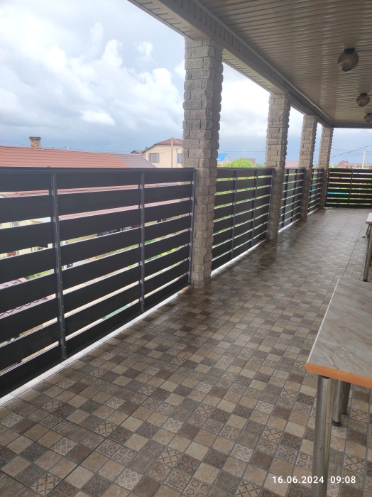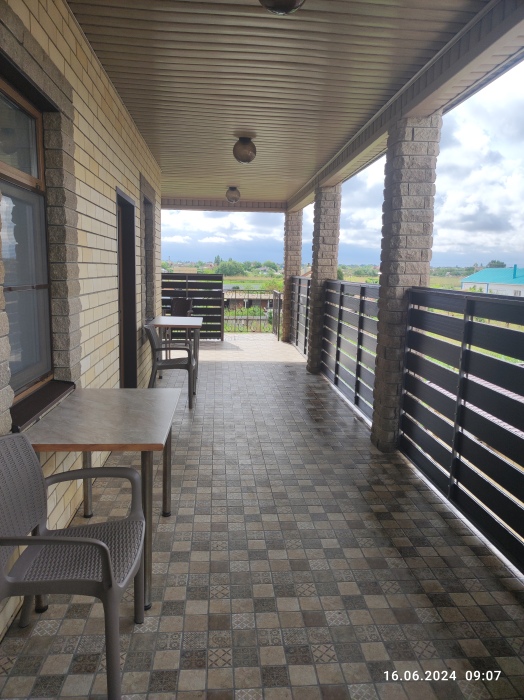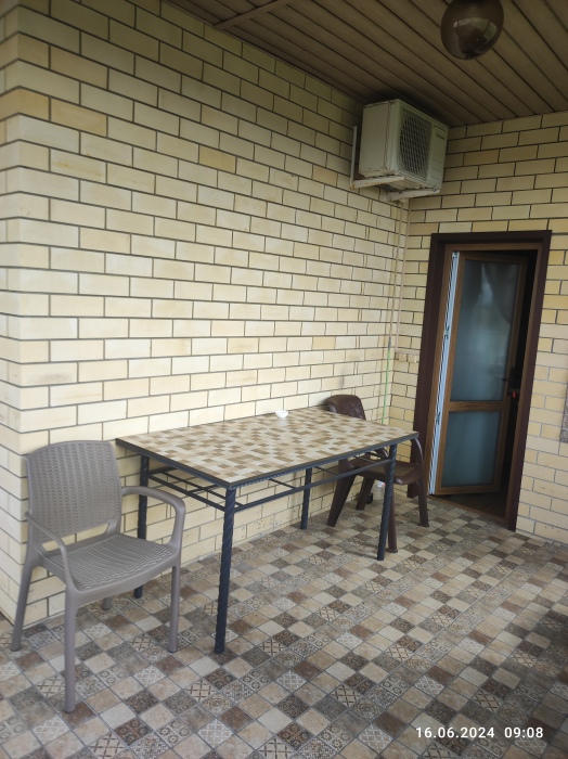 На территории благоустроенный двор с местами для отдыха на свежем воздухе, мангал, общая кухня для самостоятельного приготовления пищи. Для тех кто не желает готовить, можно заказать питание на дом, к услугам готовые обеды, суши, пицца от кафе. Для гостей предусмотрен летний душ, бесплатная автостоянка. Горячая и холодная вода постоянно.