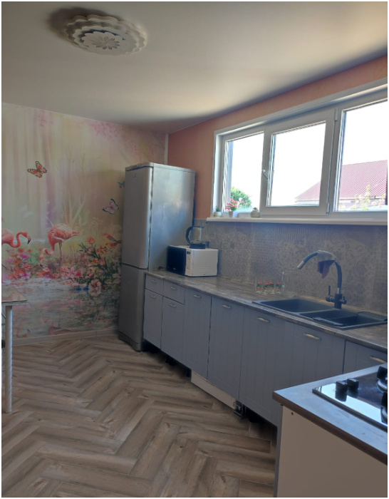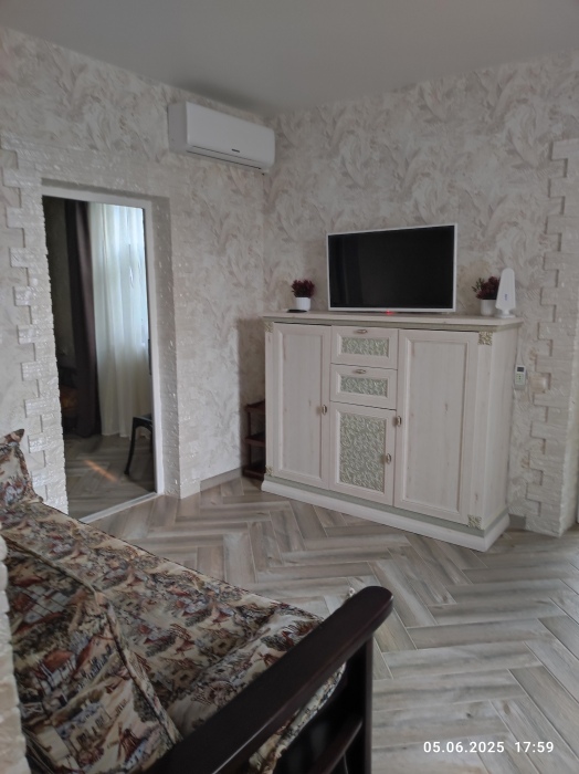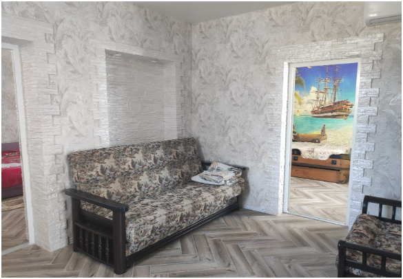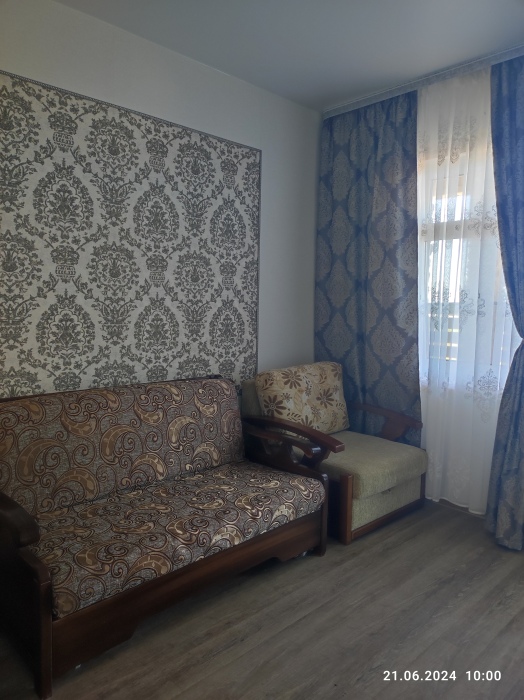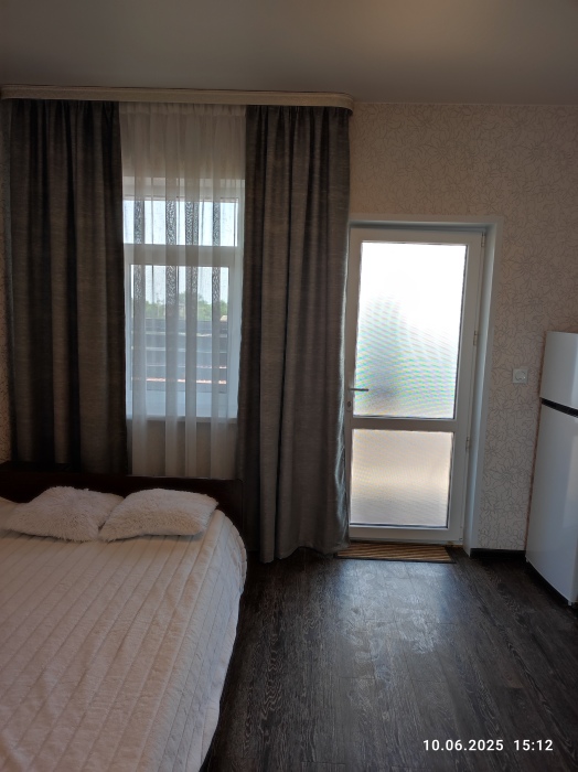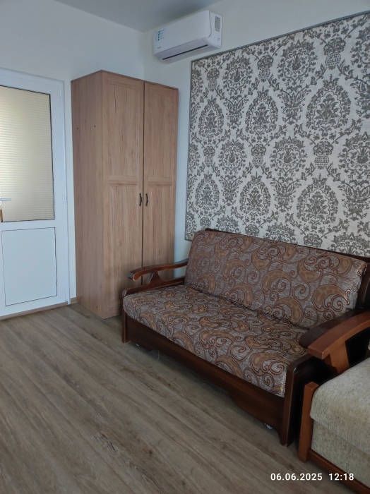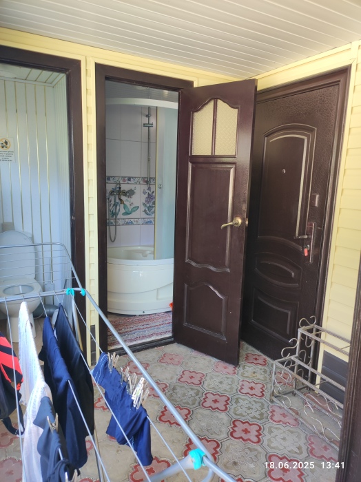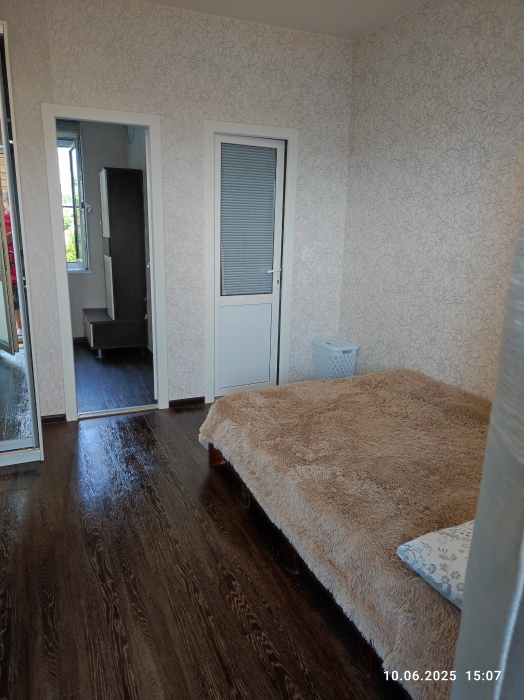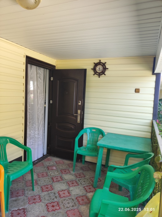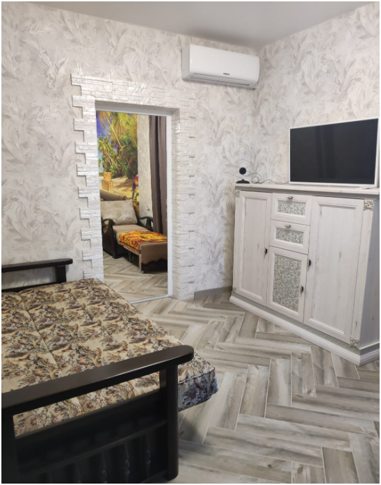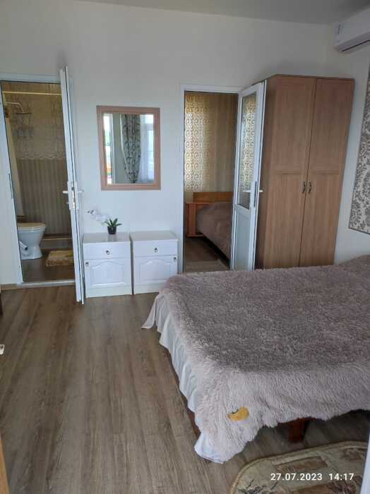 Двухкомнатный отдельный дом со всеми условиями, своей кухней и зоной для отдыха. В доме в каждой комнате двух спальный диван-кровать, шкаф и всё необходимое, есть отдельный выход с каждой комнаты. Дополнительно спальное место, кресло кровать. Весь дом для одной семьи.