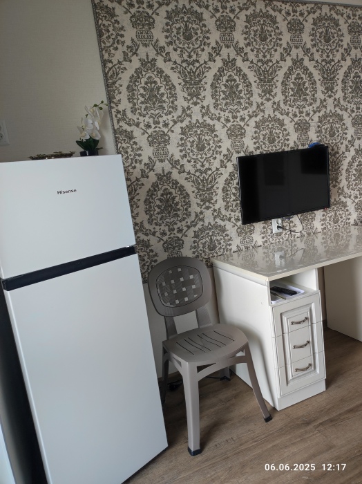 Общая кухня на два номера люкс . Посуда индивидуально. холодильник в номере .