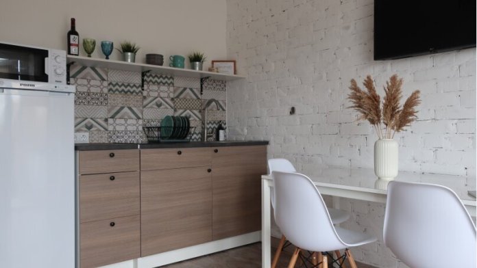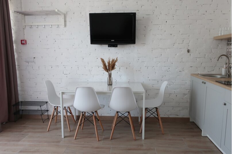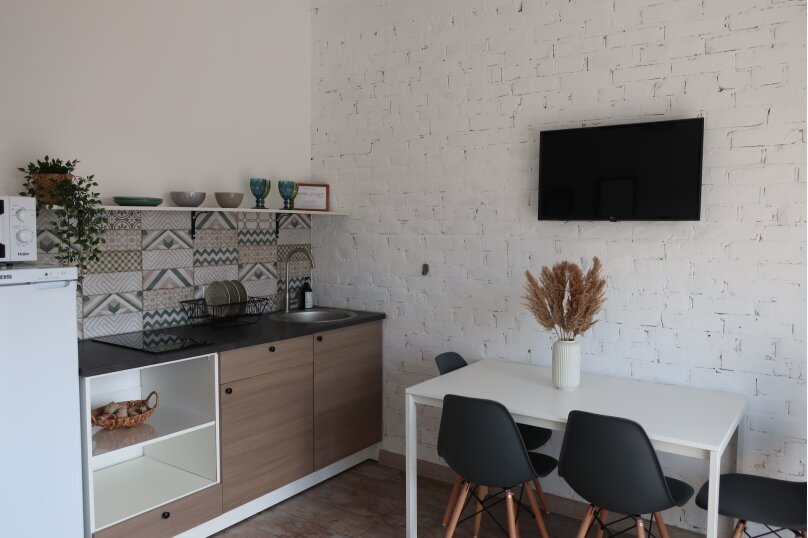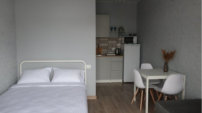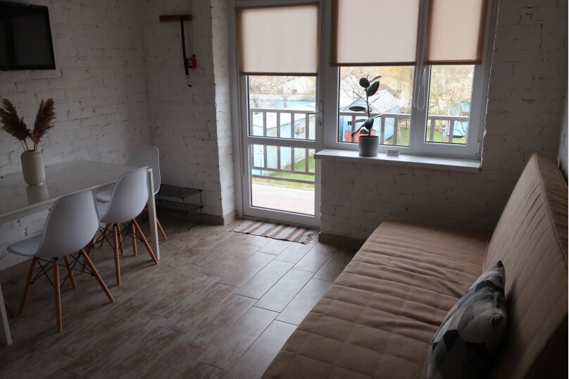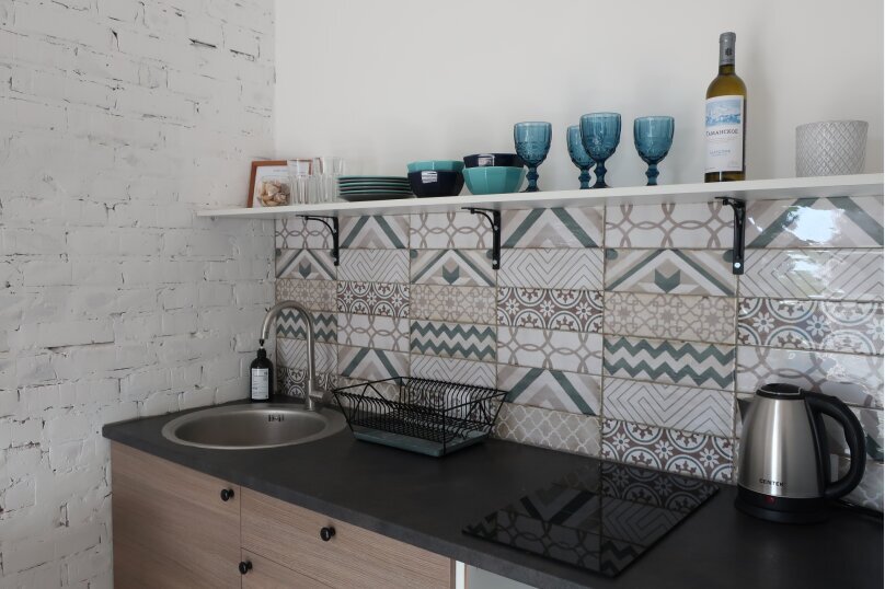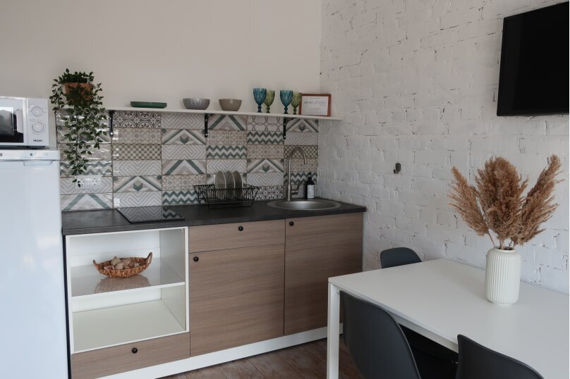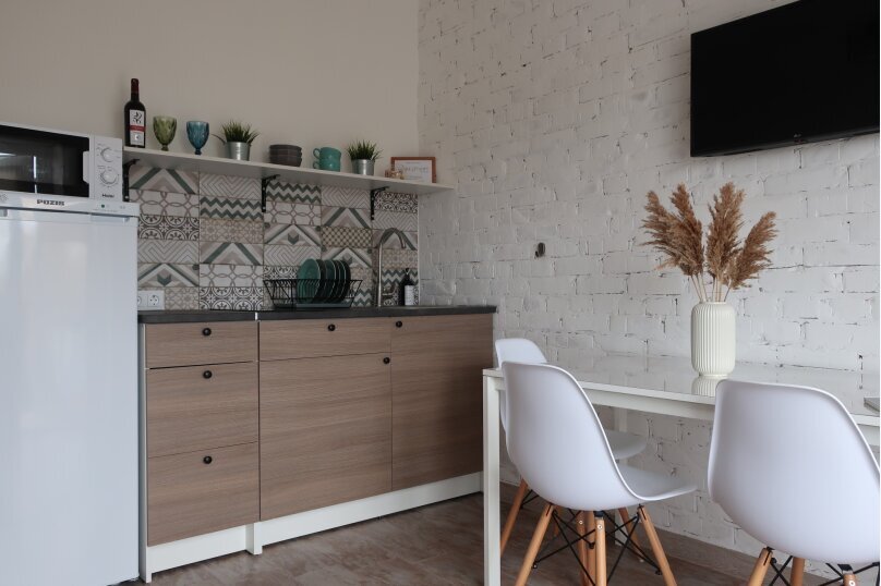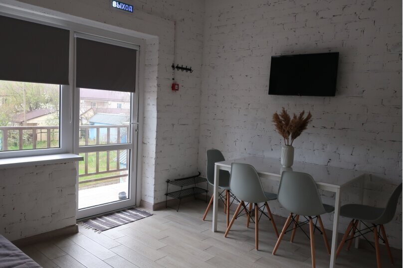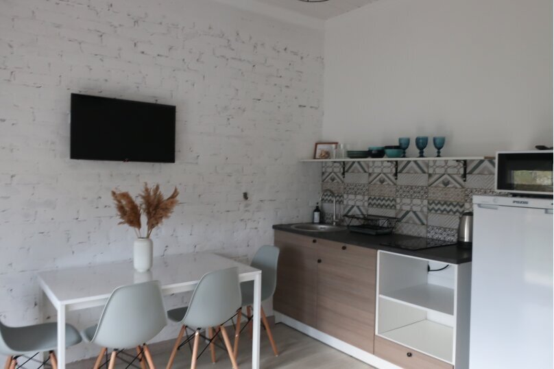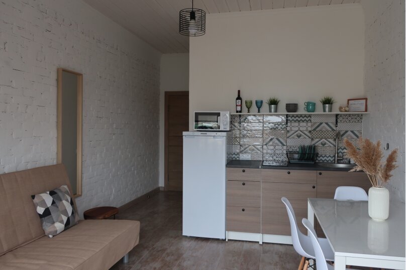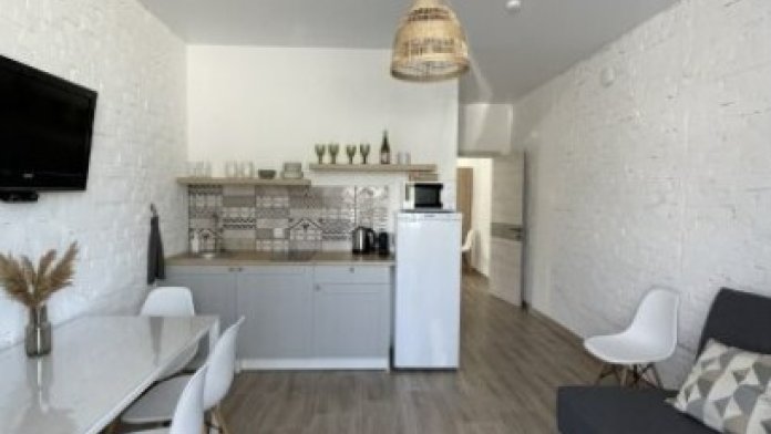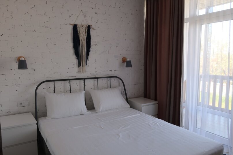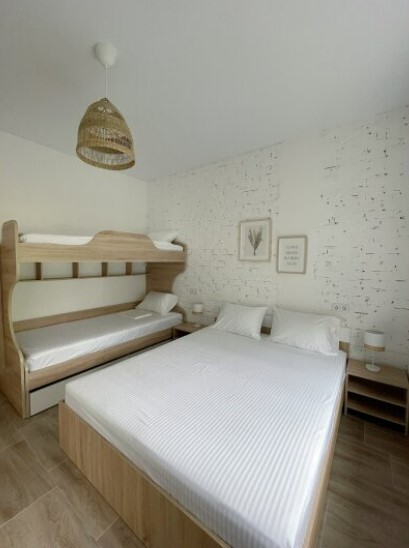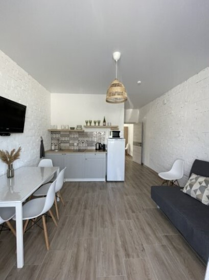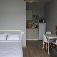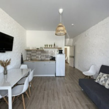 Каждый апартамент оснащен всем необходимым для длительного проживания всей семьи. В каждом апартаменте имеется кухонная зона со всем необходимым для приготовления пищи. Современное 2-этажное здание в стороне от дороги и шумных мест. Море в шаговой доступности, в непосредственной близости вся инфраструктура - магазин «Магнит», аптека, банкомат, рынок, столовые, кафе, дельфинарий, парк развлечений, зоопарк.