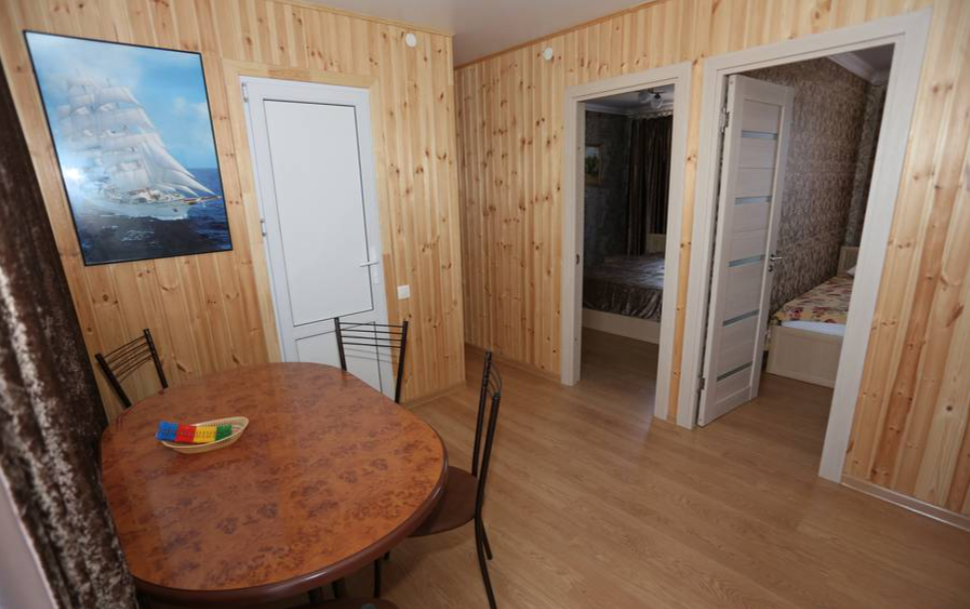 Есть все необходимое для проживания. Для размещения предлагаются комнаты в двухэтажном коттедже, рассчитанные на проживание до 4 человек. Просторные двухкомнатные и однокомнатные комнаты оборудованы новой мебелью, телевизором, сплит-системой, ванной комнатой и туалетом, внутри номера есть своя кухня, WI-FI.