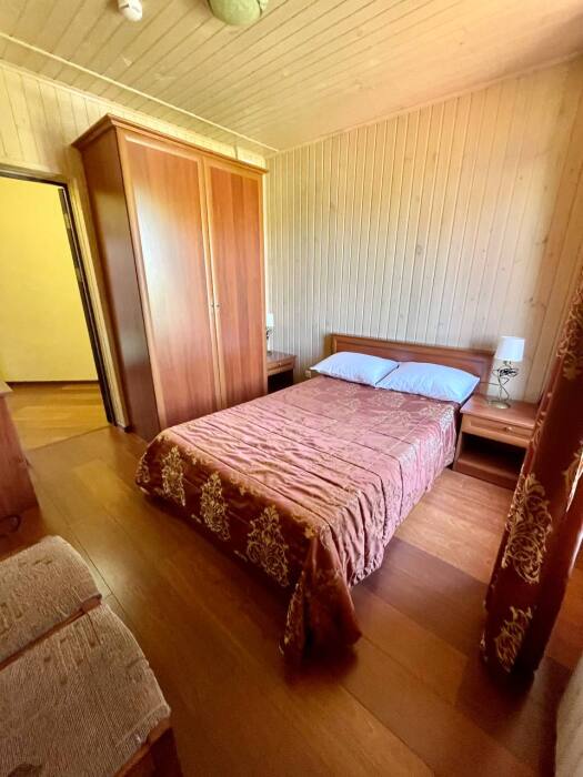 В каждой комнате: 2-х спальная кровать, холодильник, телевизор, сплит-система, шкаф, стол, стулья, тумбочки, постельные принадлежности, полотенца. Доп. место - кресло-кровать.
