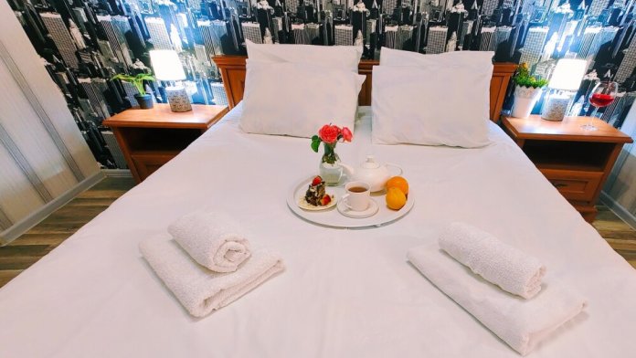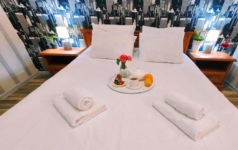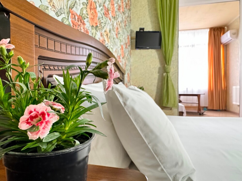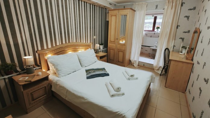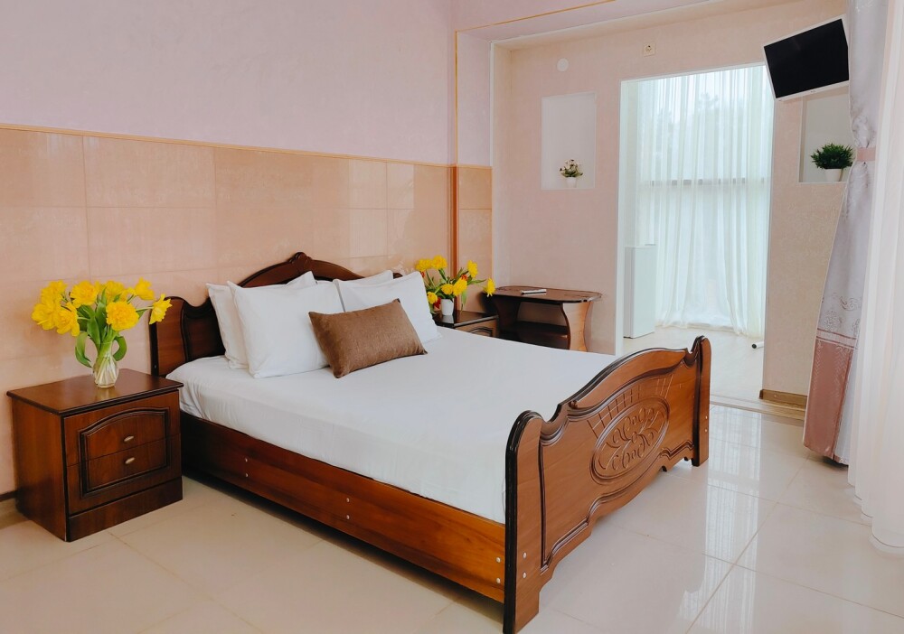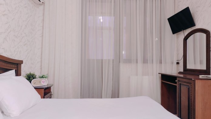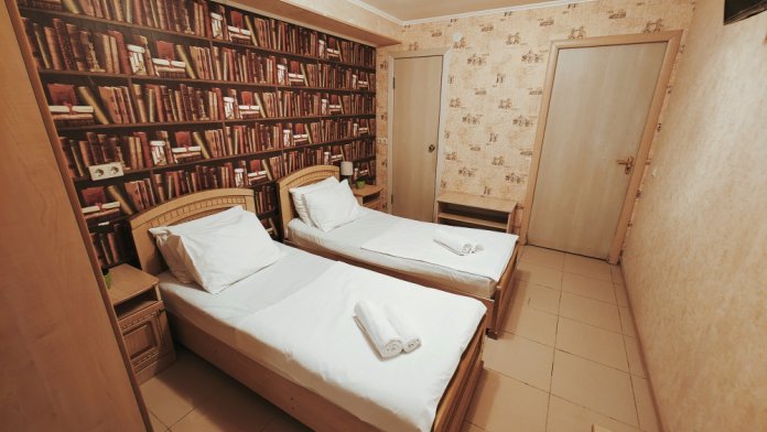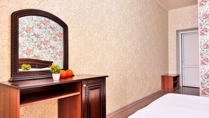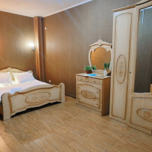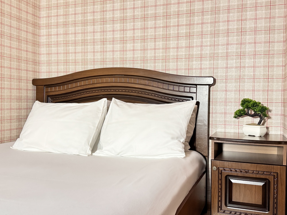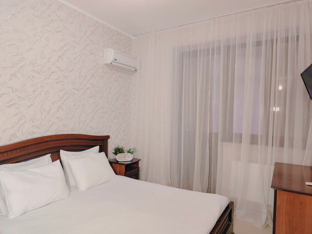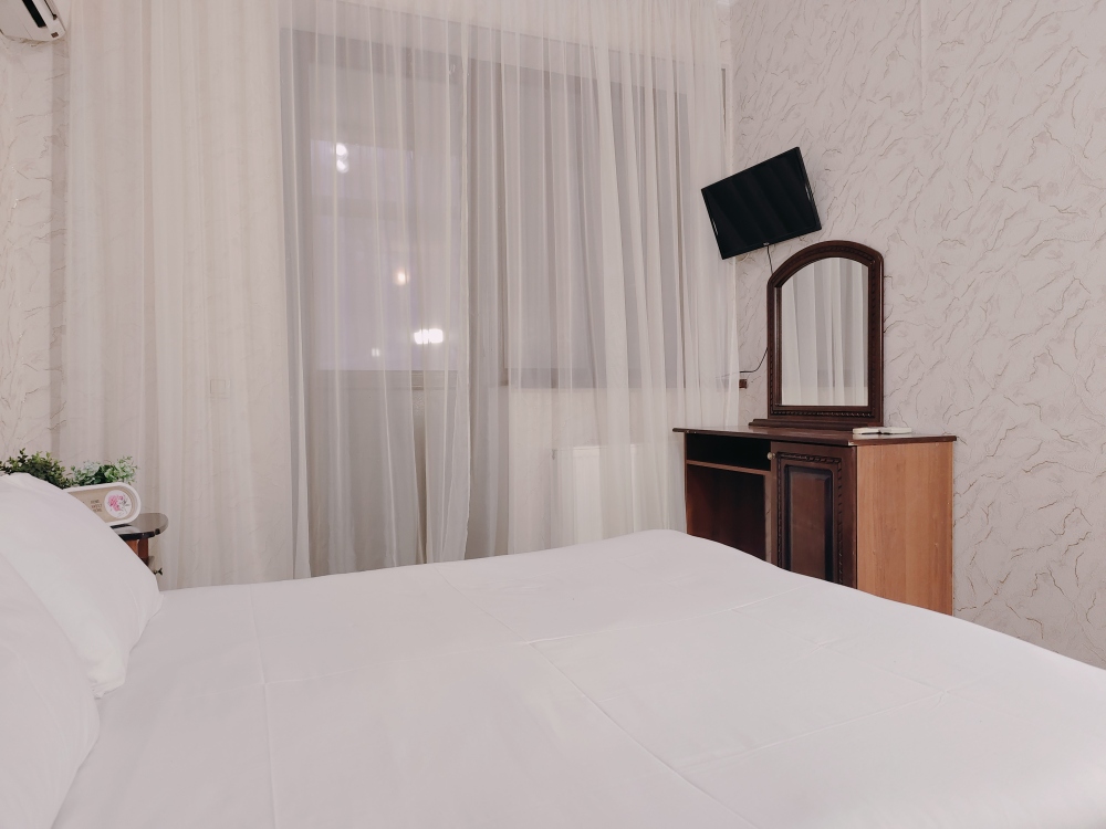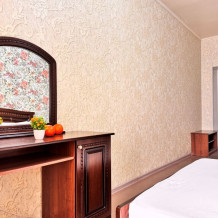 Номер оснащен: двуспальная кровать или две односпальные кровати, прикроватные тумбочки, шкаф, туалетный столик, зеркало, телевизор, мини-холодильник.