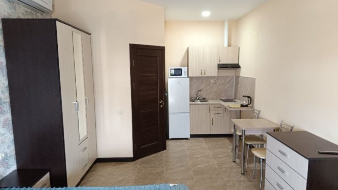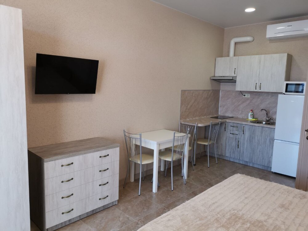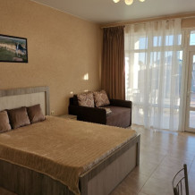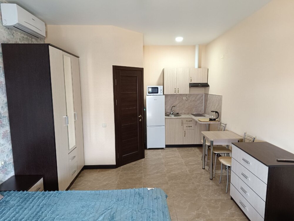 Для проживания гостям предлагаются новые, полностью укомплектованные апартаменты со всем необходимым для Вашего комфортного проживания: современная мебель и отделка, бытовая техника и электроника, высокоскоростной (до 1 гбит/с) интернет. Имеется возможность самостоятельного приготовления пищи. Все номера смотрят на море, с выходом на балкон.