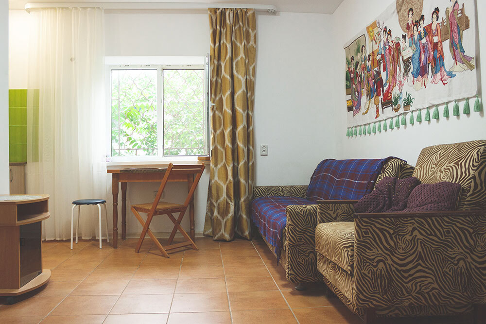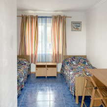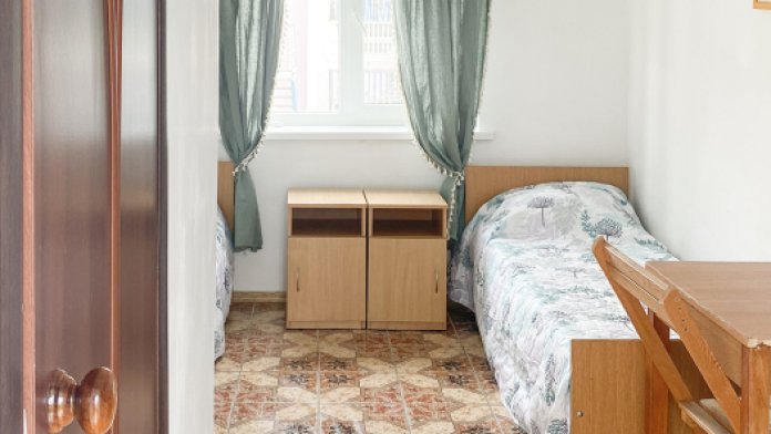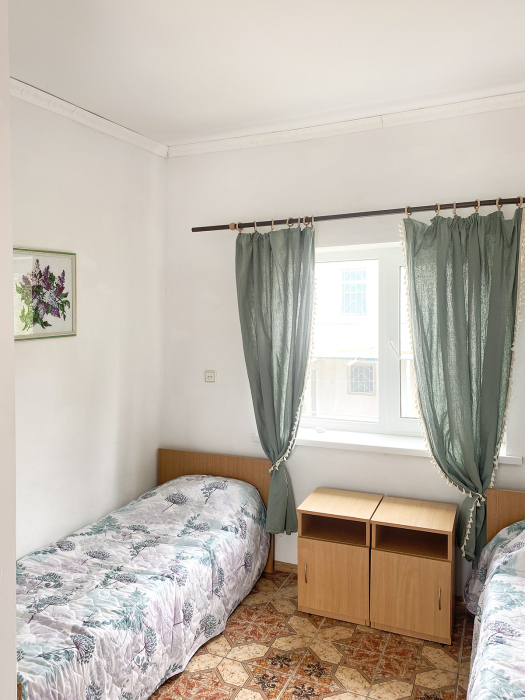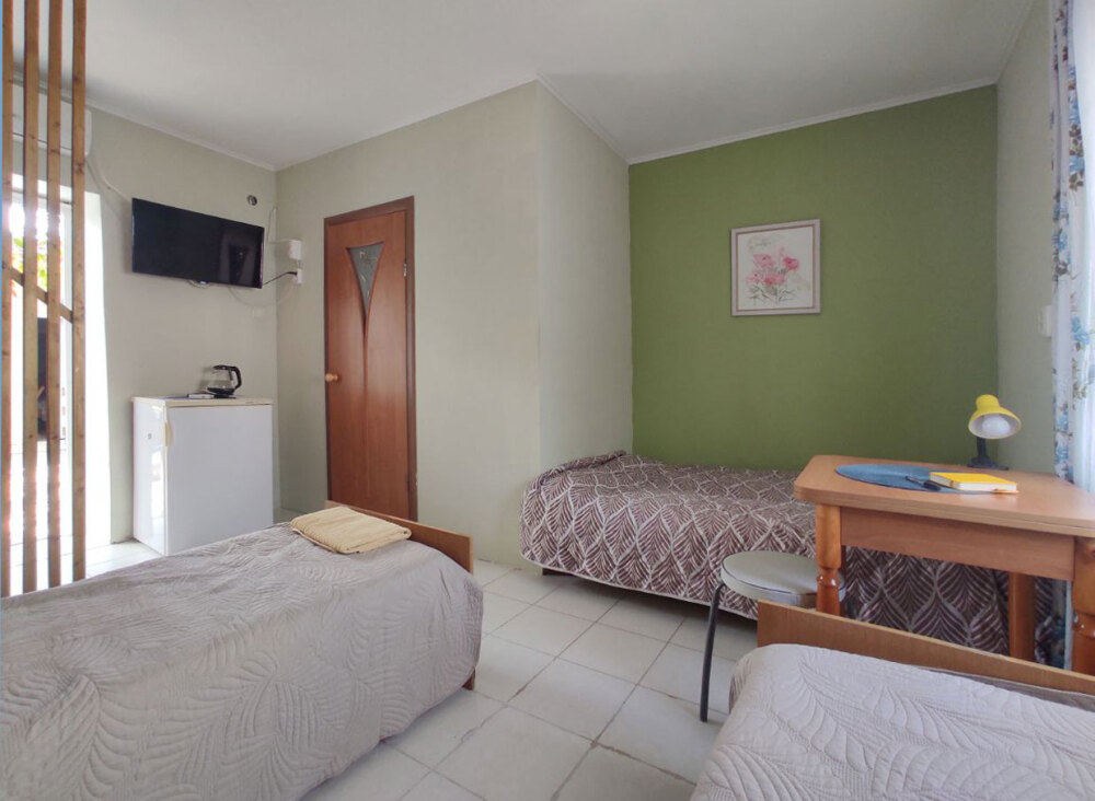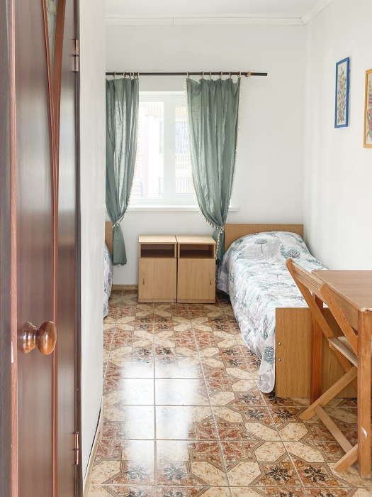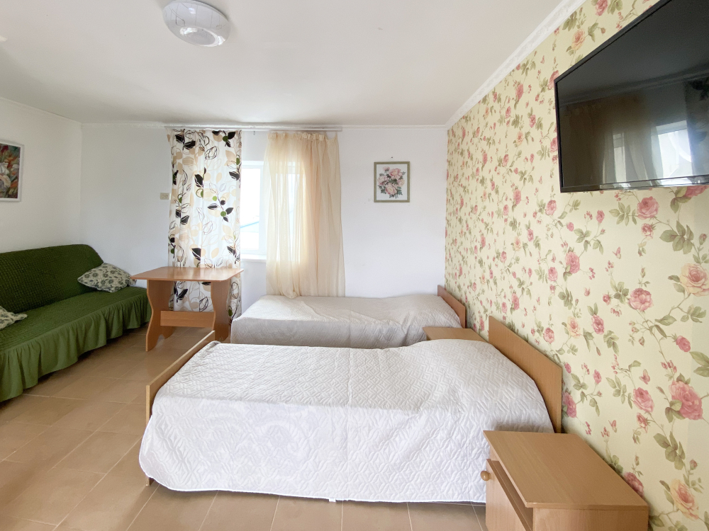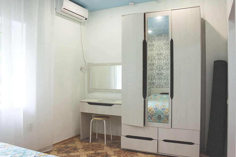 Двухкомнатный прохладный обособленный номер на 1 этаже рядом с кухней.