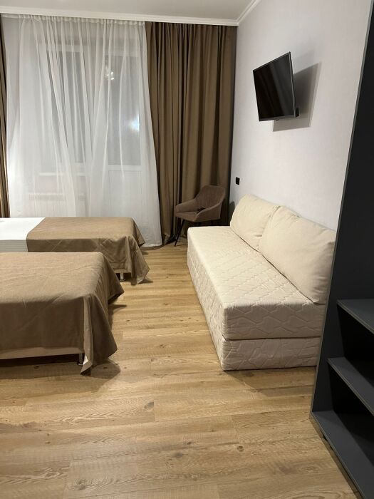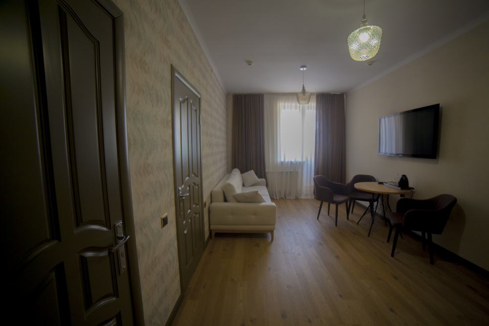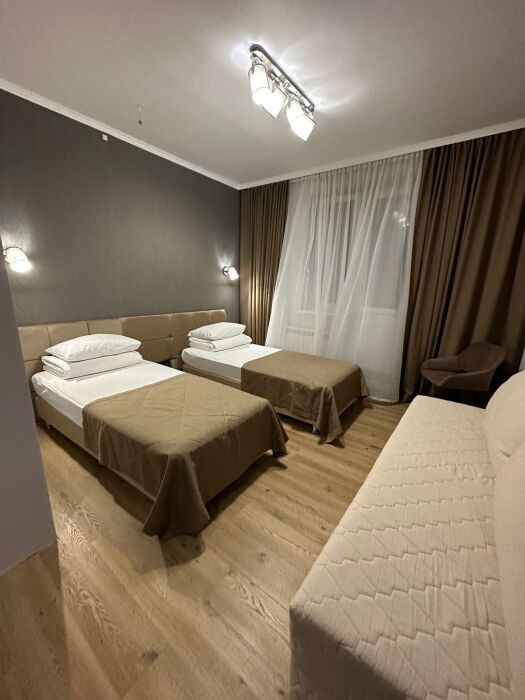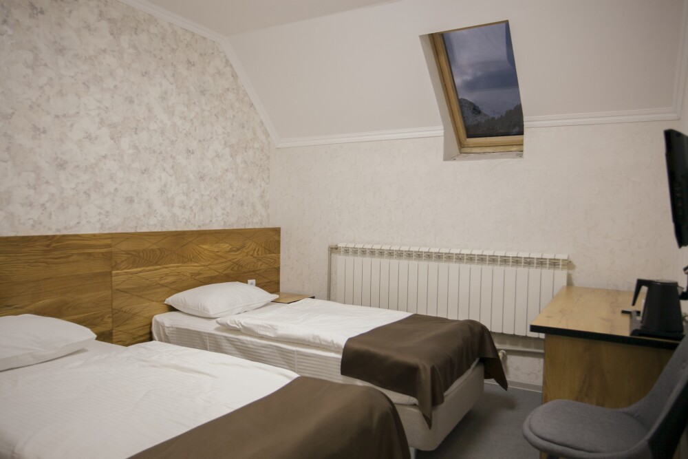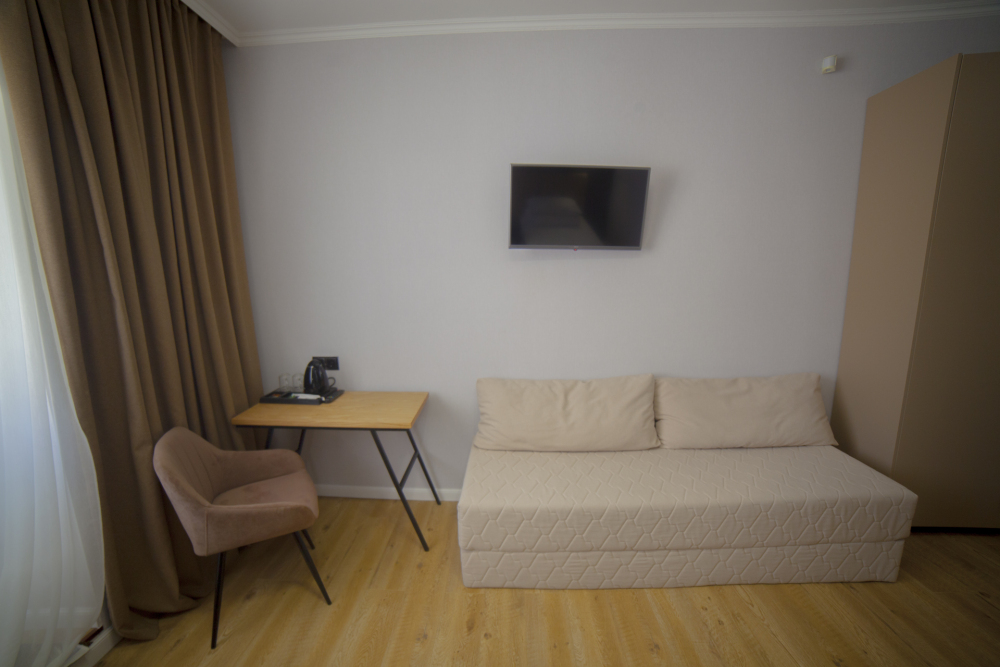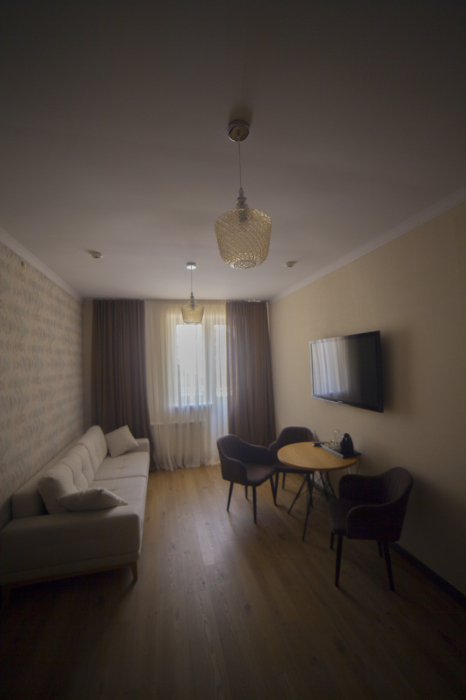 Гармоничный интерьер и доброжелательный персонал располагают к отдыху. Пообщаться с друзьями или посидеть вечером с книгой Вы можете в просторном холле на удобных мягких диванах. Стоимость проживания в отеле вполне приемлема, плюс ко всему, здесь предлагаются дополнительные скидки и бонусы. Если с Вами путешествует маленькие дети, то за них Вам ничего не нужно будет доплачивать при условии, что им нет еще пяти лет.