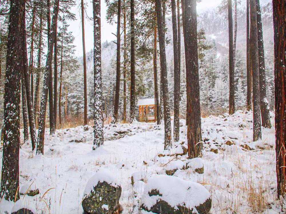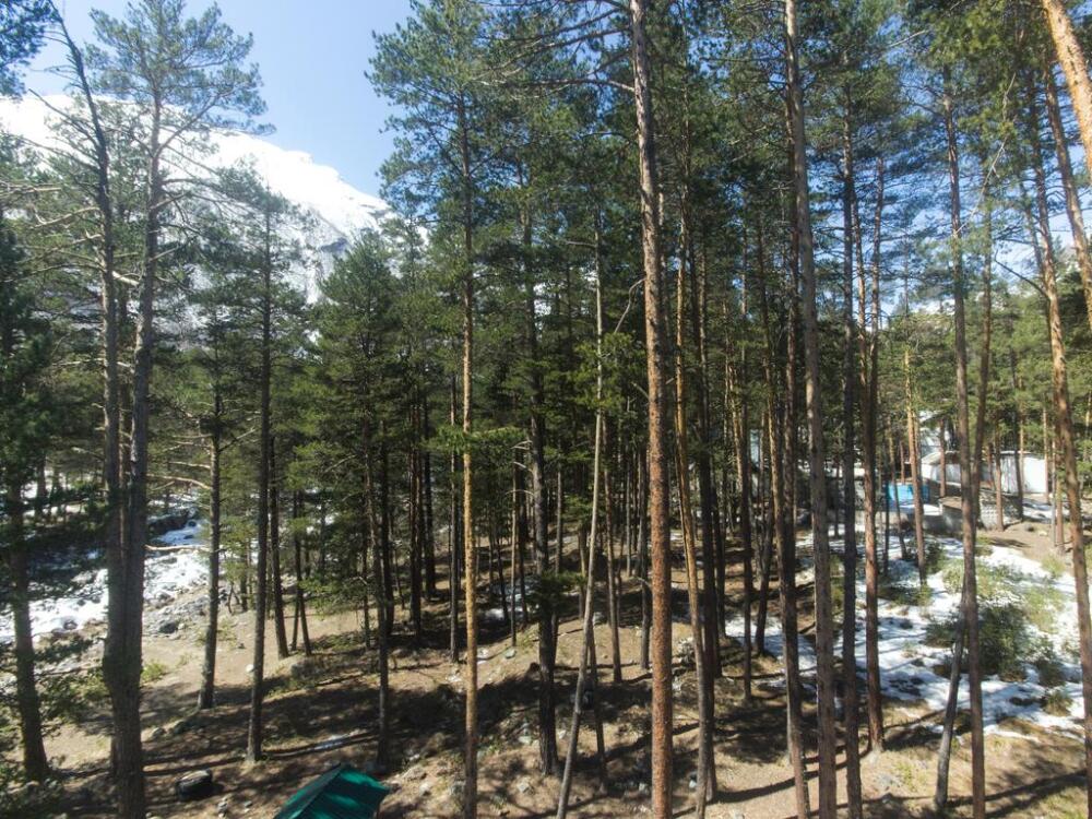 Гостиница «Сосновый бор» неспроста получил название, а заслуженно, ибо находится в сосновом бору. Гостиницу окружают реликтовые сосны. Это говорит о том, что гостиница находится в уникально безопасном месте от схода лавин. Из окон открывается великолепный вид на гору Когутай (ледник Семёрка).