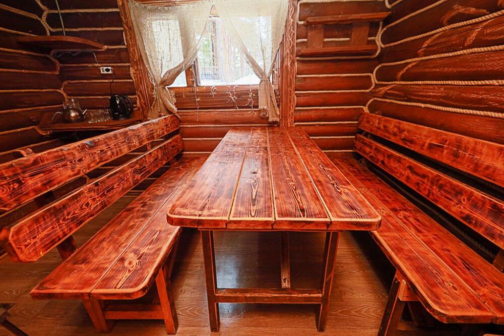 Между гостиницей и рекой протекающей рядом стоит деревянный сруб настоящей русской бани на дровах. На территории есть мангал и беседки для любителей приготовить шашлык самостоятельно. Через дорогу нарзанный источник «Ачи-Су».