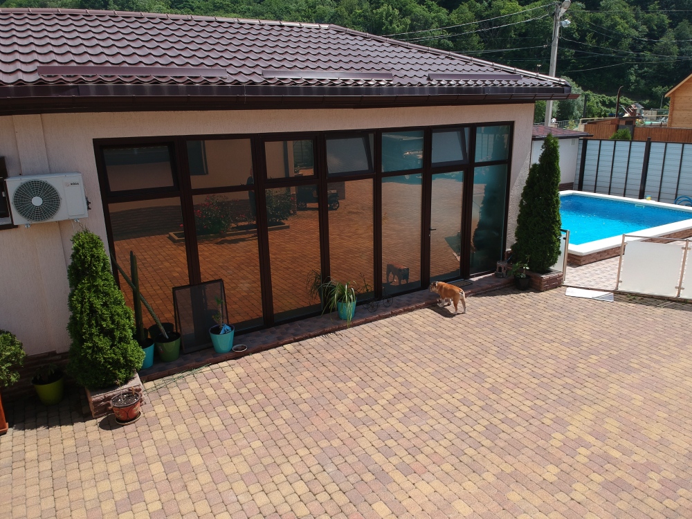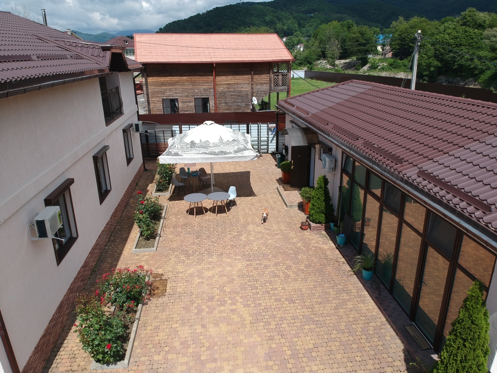 Удобная стоянка для авто, мангалы для шашлыка, беседки, круглогодичный подогреваемый бассейн. Пляж - 900 метров, мелкий камушек, находится в 5-10 минутах ходьбы вдоль реки Агой, трассу переходить не надо. Море чистое, пляж (бесплатный) большой и широкий. В 5 км находится аква-парк и дельфинарий, огромный выбор кафе и ресторанов.
