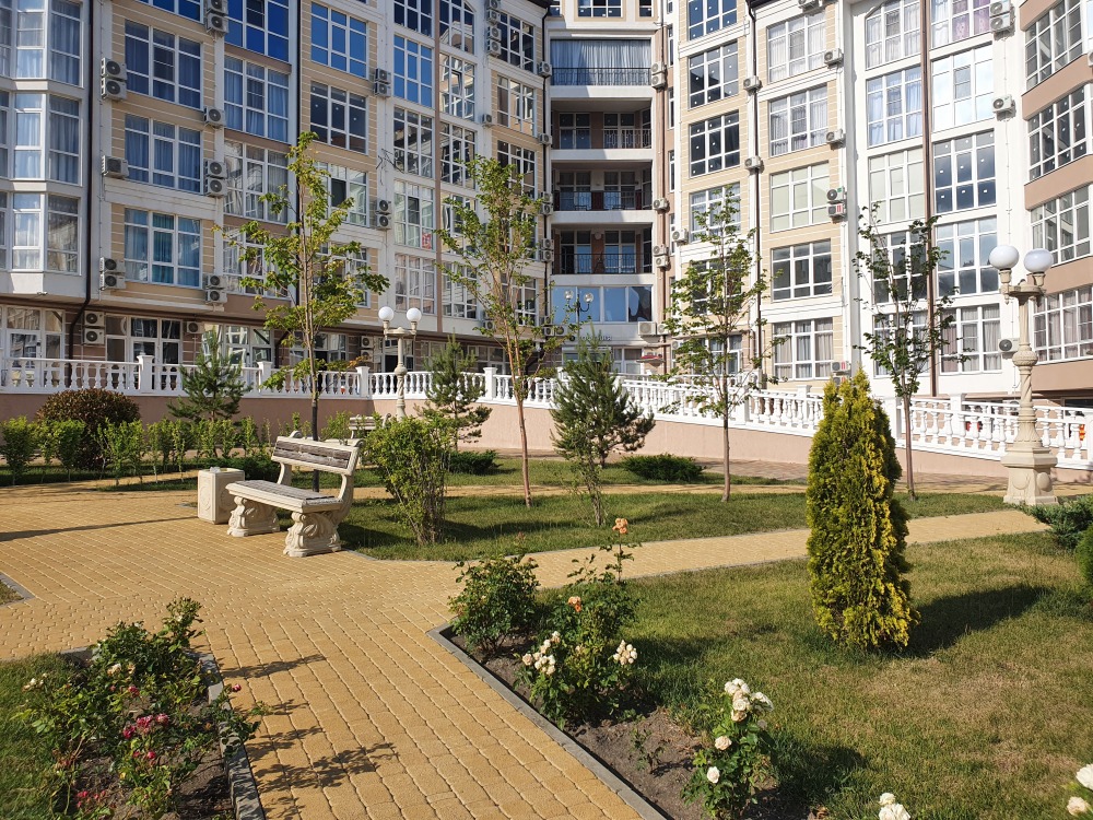 На закрытой территории комплекса бесплатная парковка, фонтан, сквер, детские и спортивные площадки, магазины «Пятерочка» ,«Красное Белое».«Хозяюшка' Кофейня. Пункты выдачи Озон.