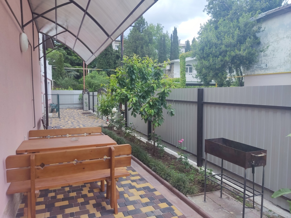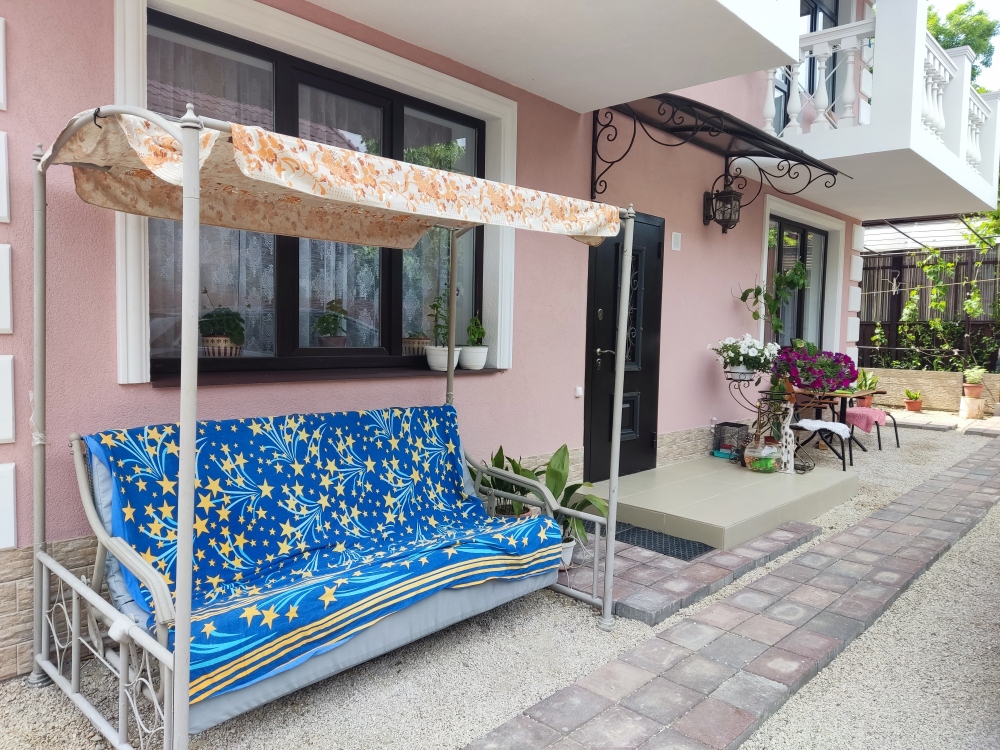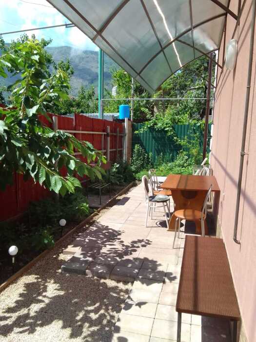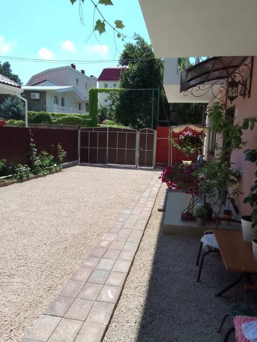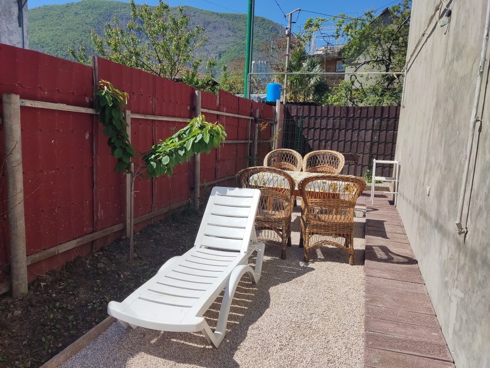 Во дворе находится мангальная зона с садовой мебелью и парковочные места на две машины. К морю 4 минуты.
