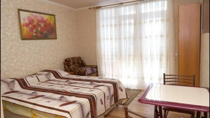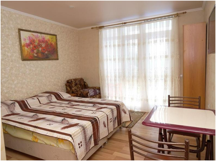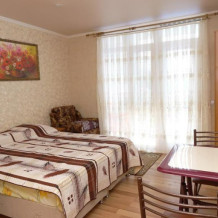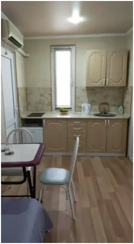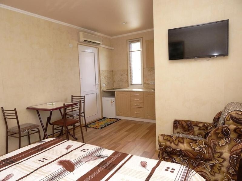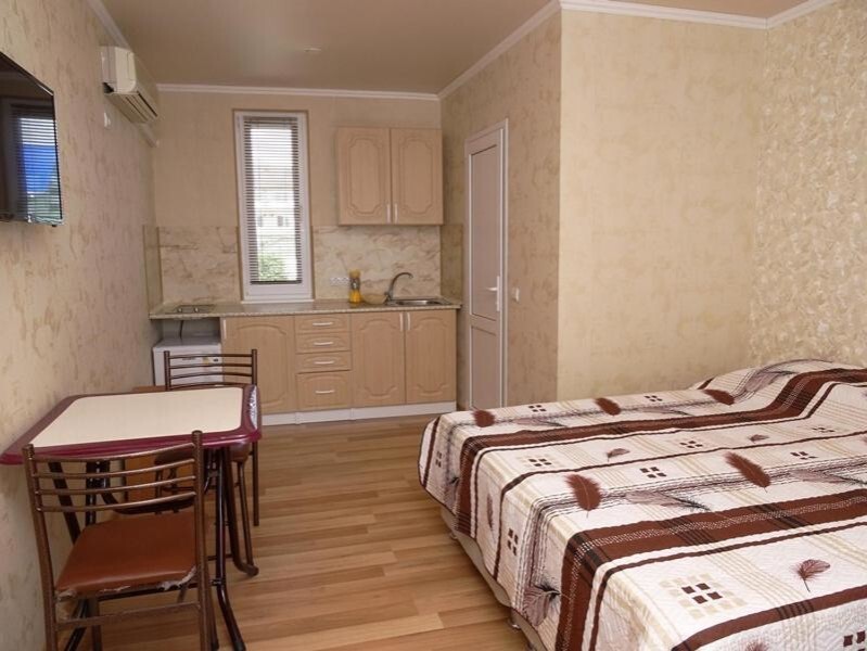 Уютный номер студия со своей кухней. В номере можно разместится семьей 4 человека: Одна двухспальная кровать, одна односпальная кровать и одно кресло-кровать.