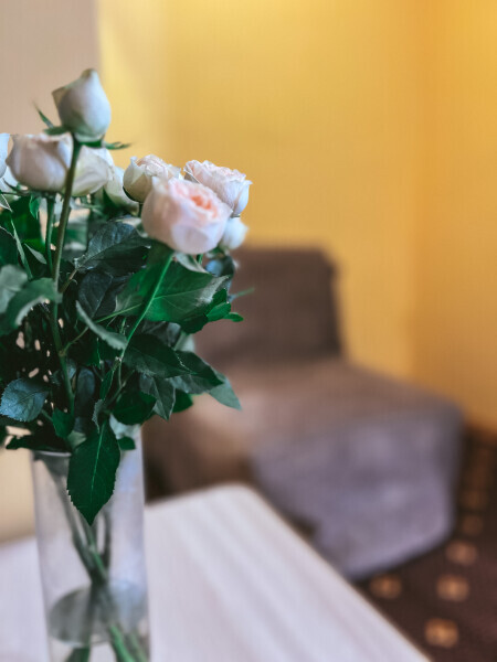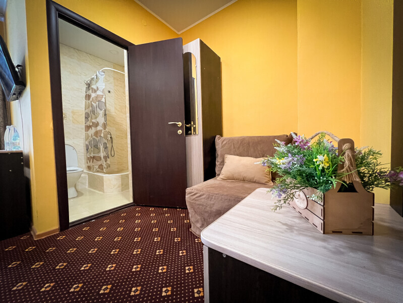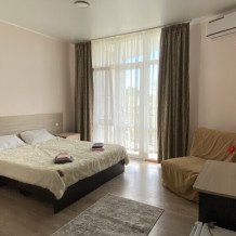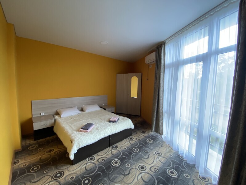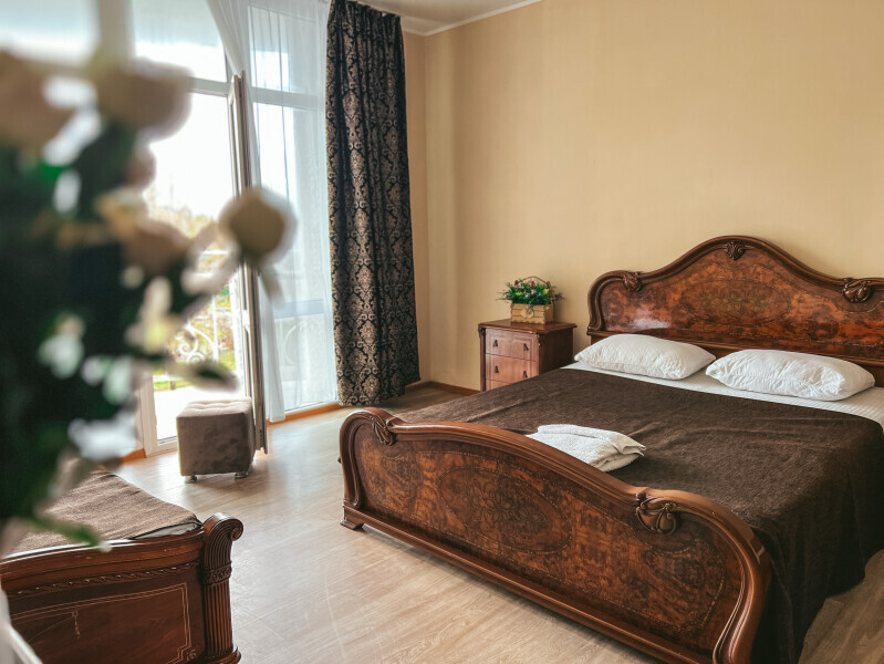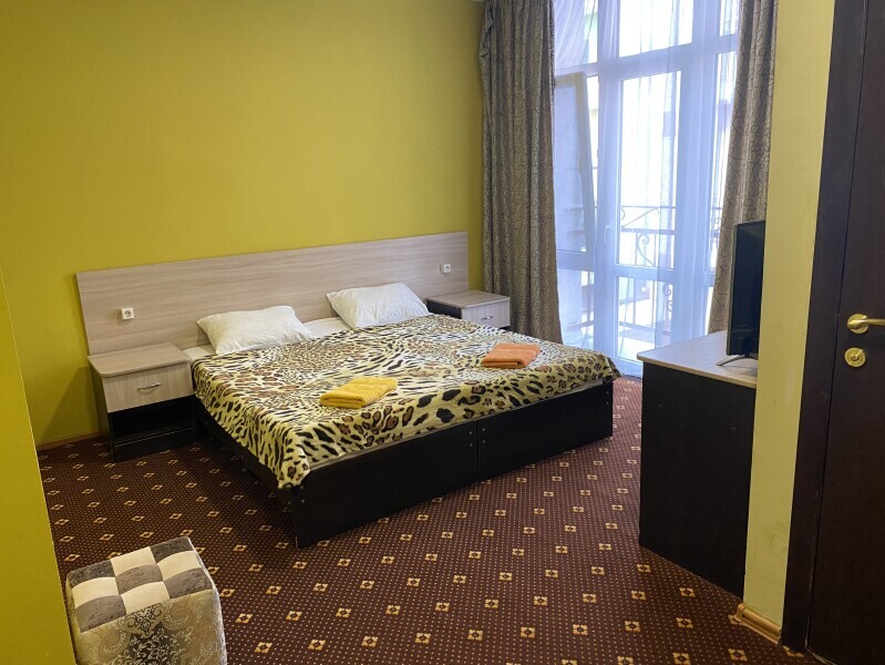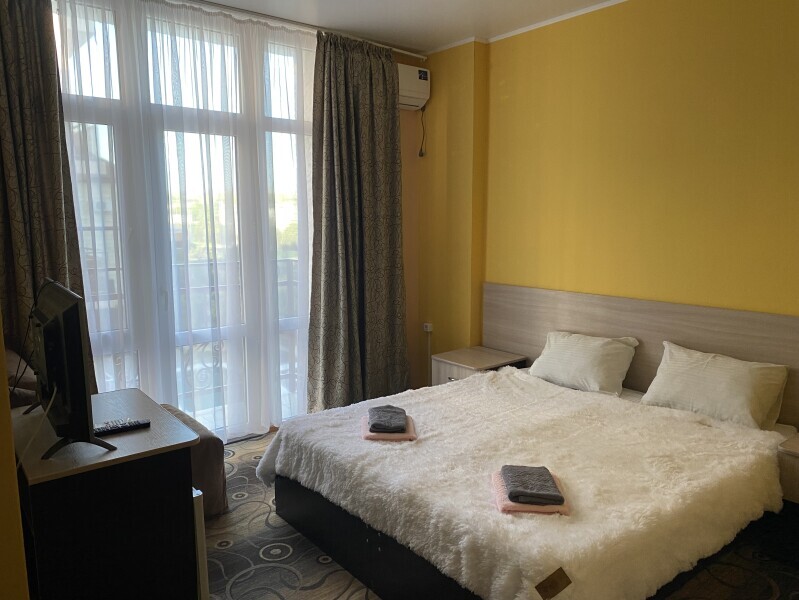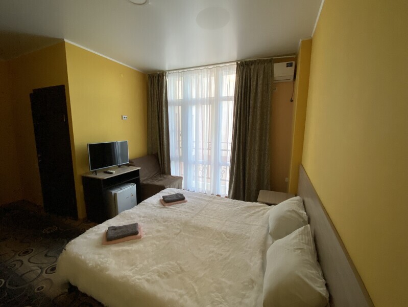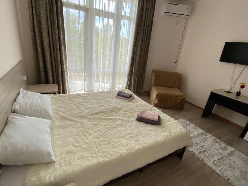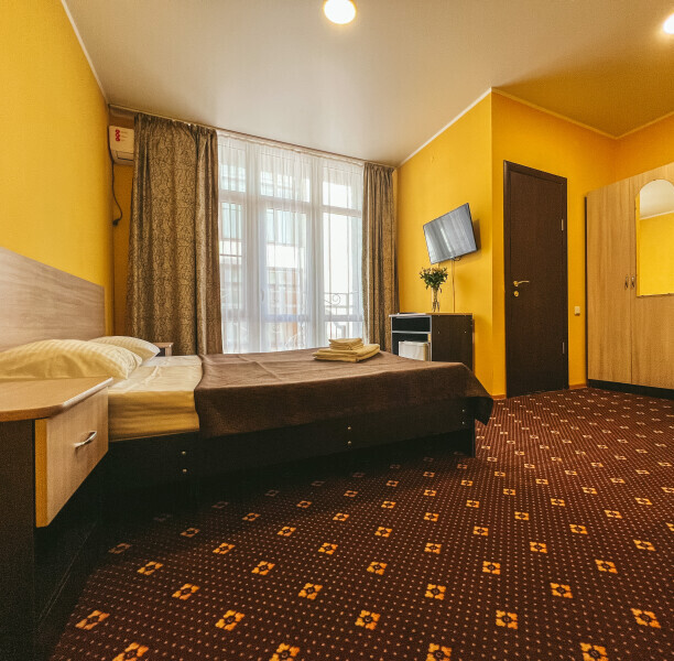 В номере: одна двуспальная или две односпальные кровати, ортопедические матрацы, прикроватные тумбочки, шкаф для одежды, стол, телевизор, WiFi, кондиционер, мини-холодильник, чайник, фен, набор полотенец, постельное белье, собственный с/у с душем, туалетно-косметические принадлежности, шторы блэкаут, балкон.