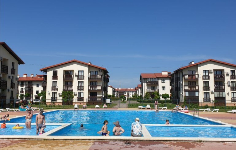 Парковка на территории комплекса бесплатна. Для детей спортивные и современные игровые площадки . Для проживающих на территории комплекса в летний период работают 2 бассейна.