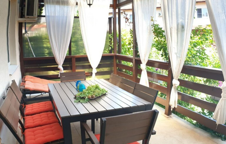 Условия дома позволят комфортно разместиться большой семье или дружной компании. Для комфортного проживания есть все необходимое, в доме 4 отдельные спальни и просторная кухня-гостиная, два санузла (на каждом этаже). Все комнаты меблированы, имеется вся бытовая техника, холодильник, микроволновая печь, электрическая плита с духовкой, кондиционеры в комнатах. Для маленьких гостей есть детская кроватка, коляска и стульчик для кормления. Свой отдельный вход и балкон, терраса и мангальная зона.