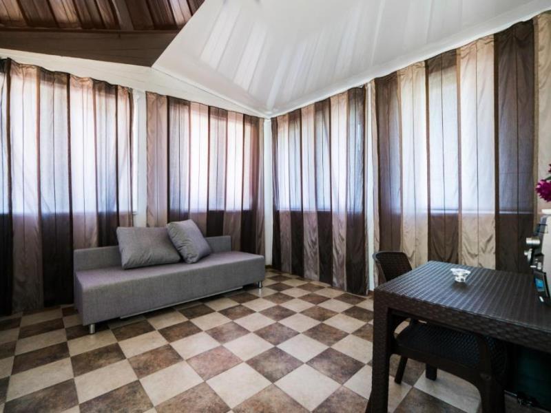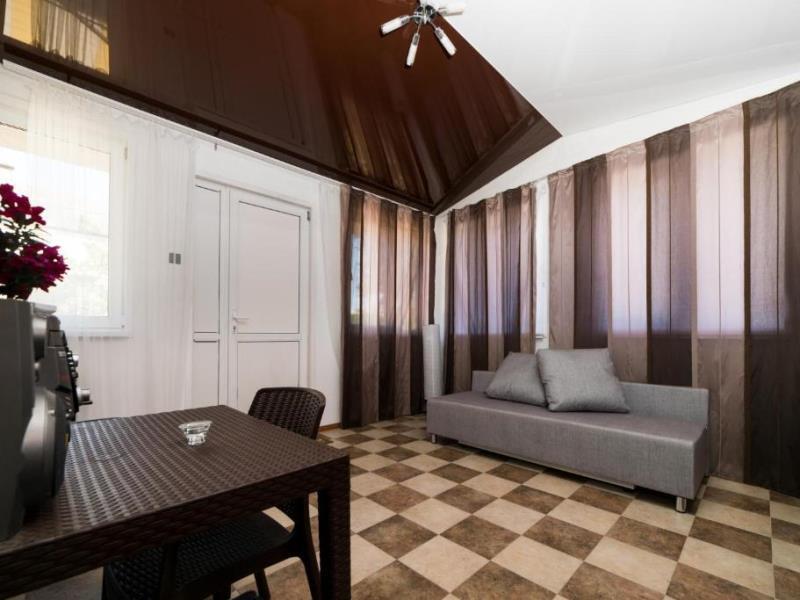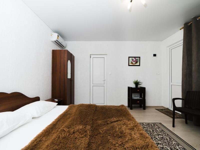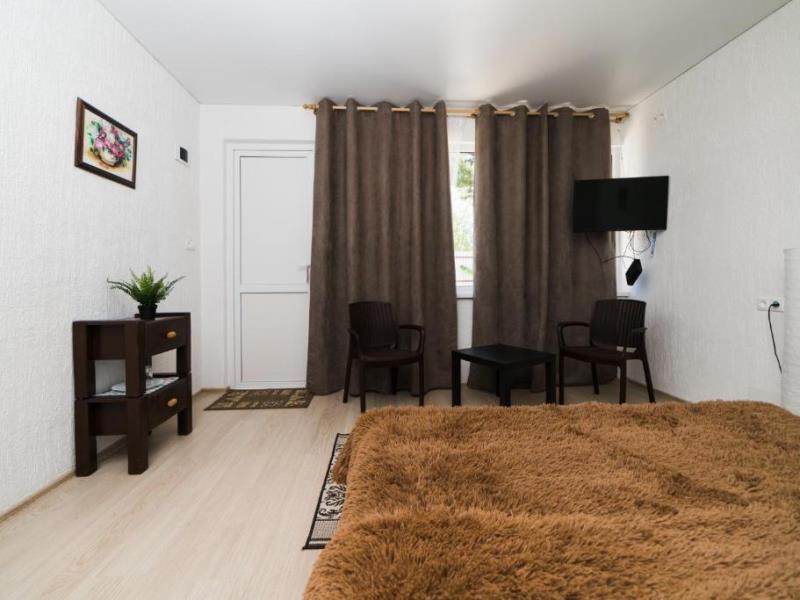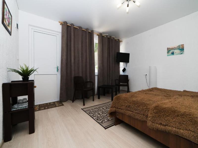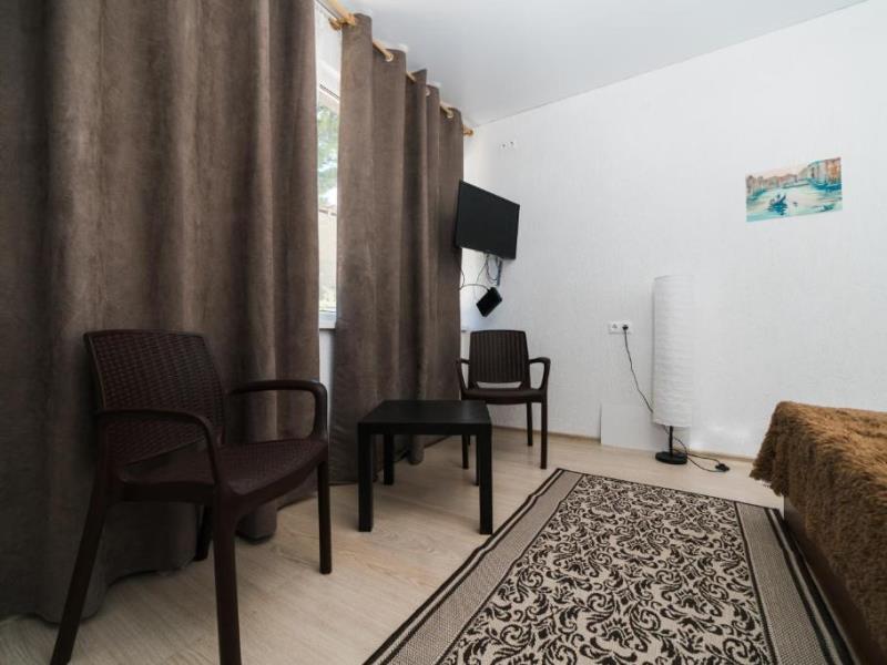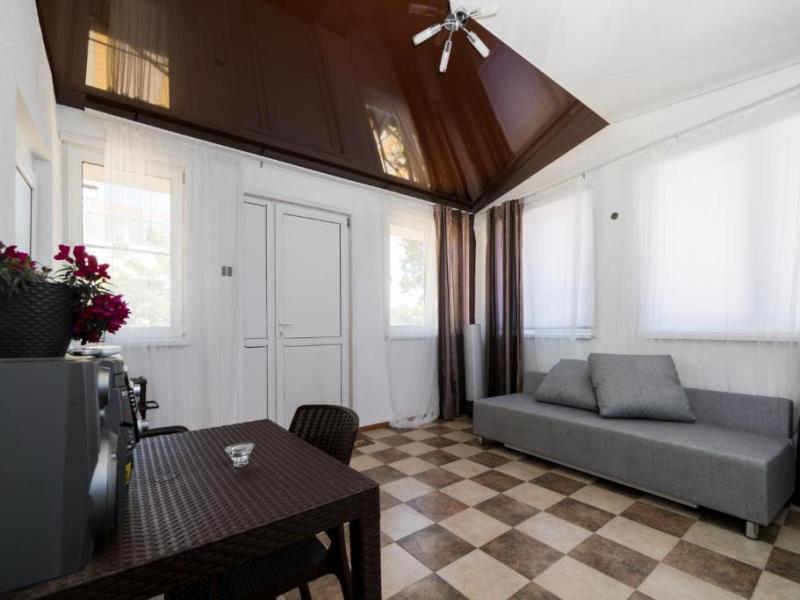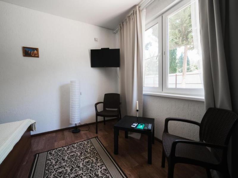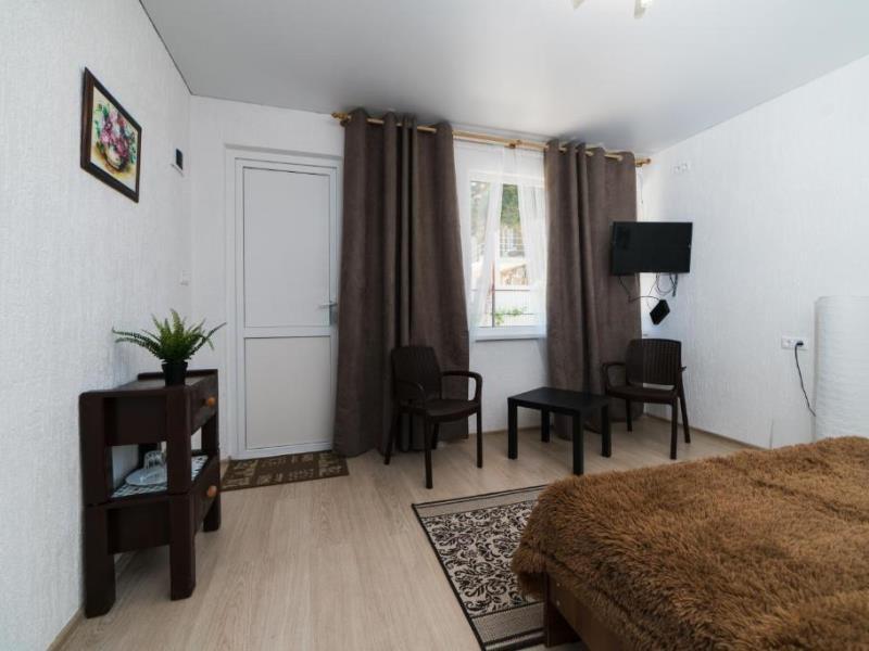 На территории двухэтажный дом и одноэтажное строение с комфортабельными двухместными номерами. Для семейных отдыхающих имеются два двухкомнатных номера на 4 человека.