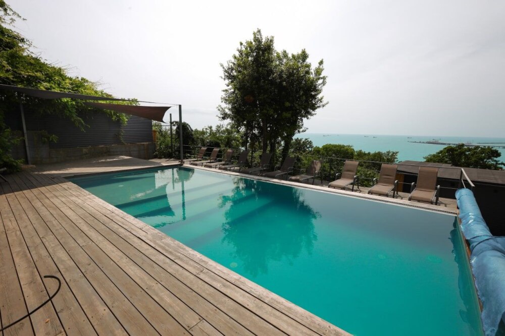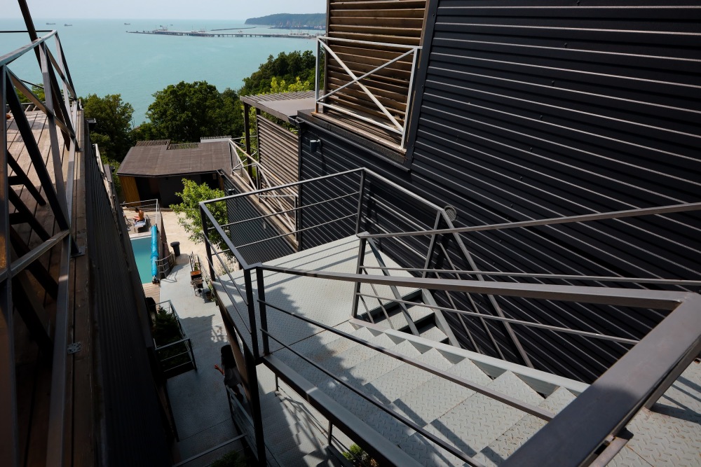 Здание отеля имеет оригинальную модульную концепцию в виде каскада стилизованного под контейнера. На территории отеля располагается небольшая детская зона и подогреваемый панорамный бассейн с видом на море (подогрев с октября по май).