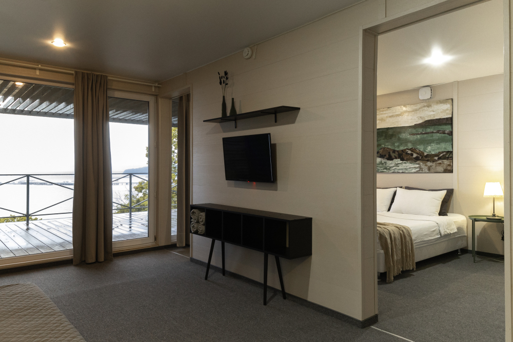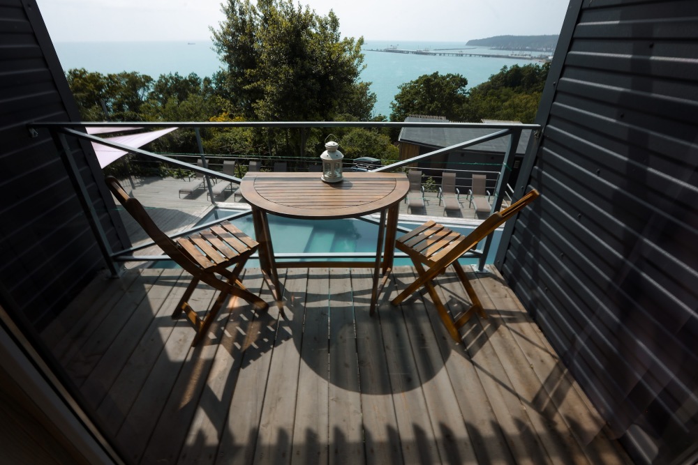 Из каждого номера открывается панорамный вид на море с собственной уединённой террасой. Во всех номерах среди удобств собственная ванная комната, гардероб и телевизор с плоским экраном. В каждом номере имеется холодильник и сплит-система, Wi-Fi. В стоимость каждого номера включен завтрак.