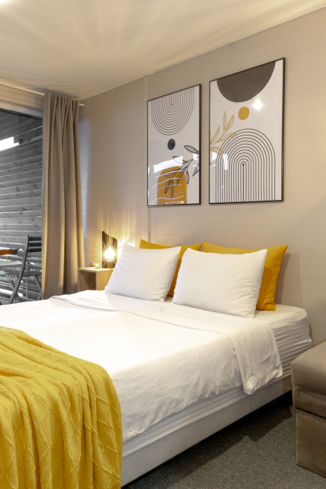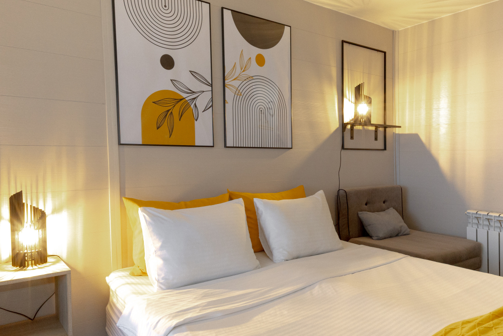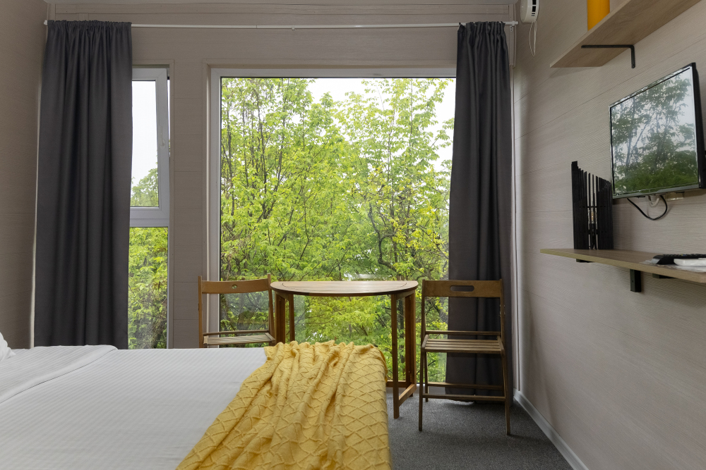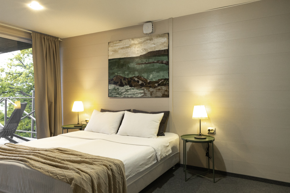 Во всех номерах среди удобств собственная ванная комната, гардероб и телевизор с плоским экраном. В каждом номере имеется холодильник и сплит-система, Wi-Fi.