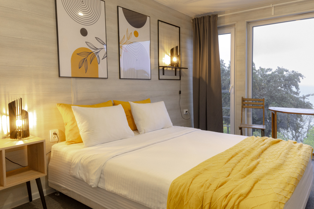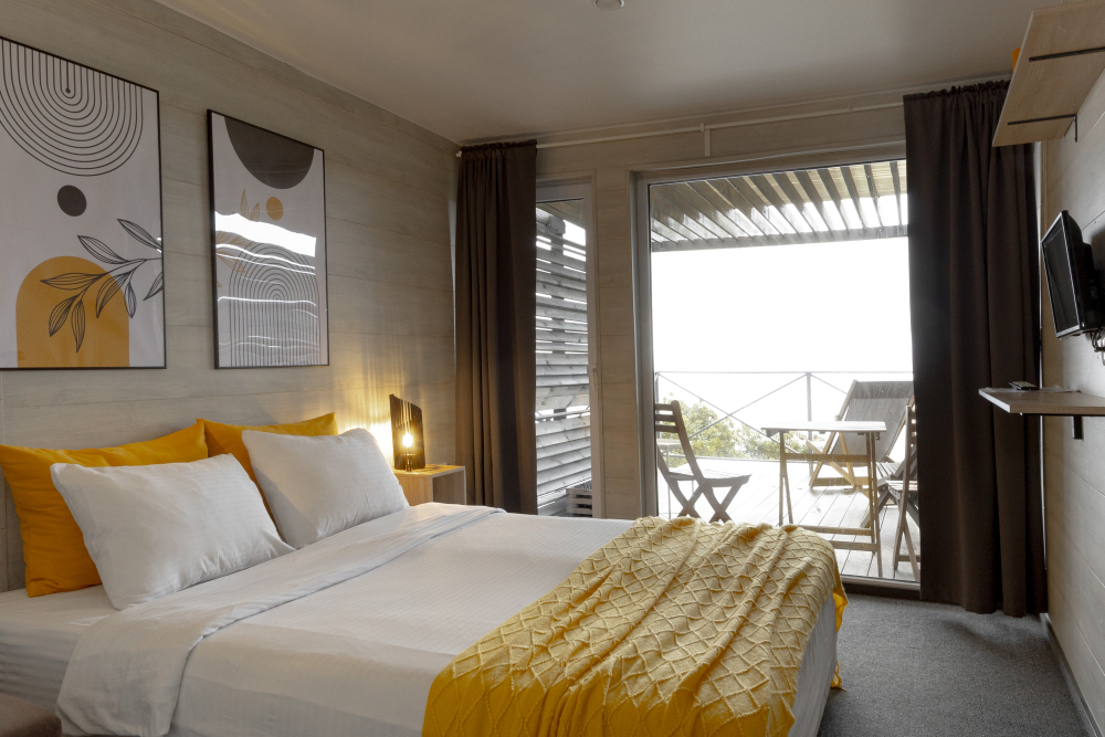 Двухместный номер с 1 двуспальной кроватью или 2 отдельными кроватями, видом на море или на лес.