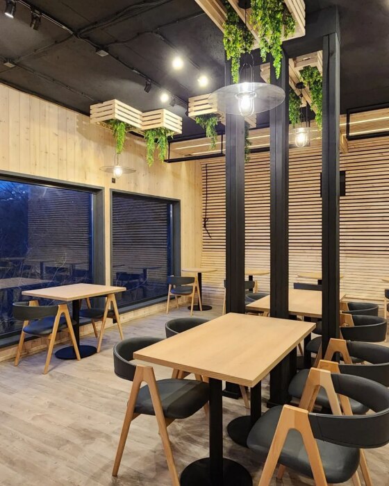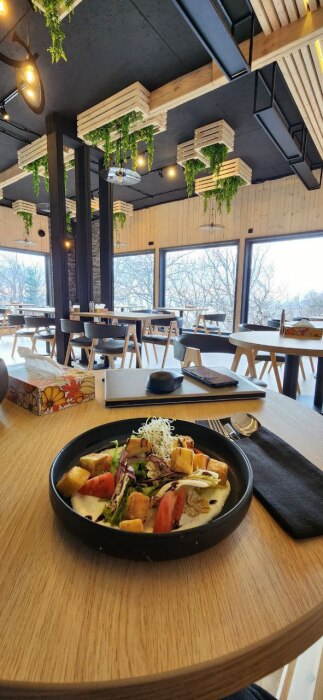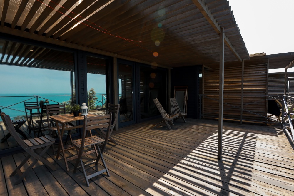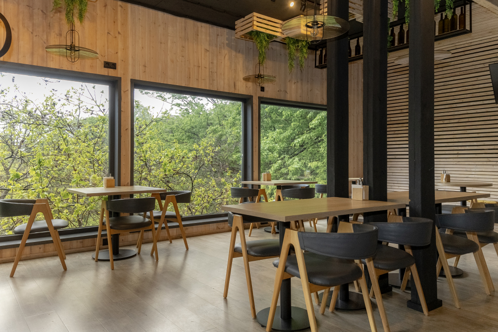 На территории отеля начало работать кафе, необычный дизайн с видом на море и лес, настоящий дровяной камин, оригинальными блюдами от нашего шеф-повара.