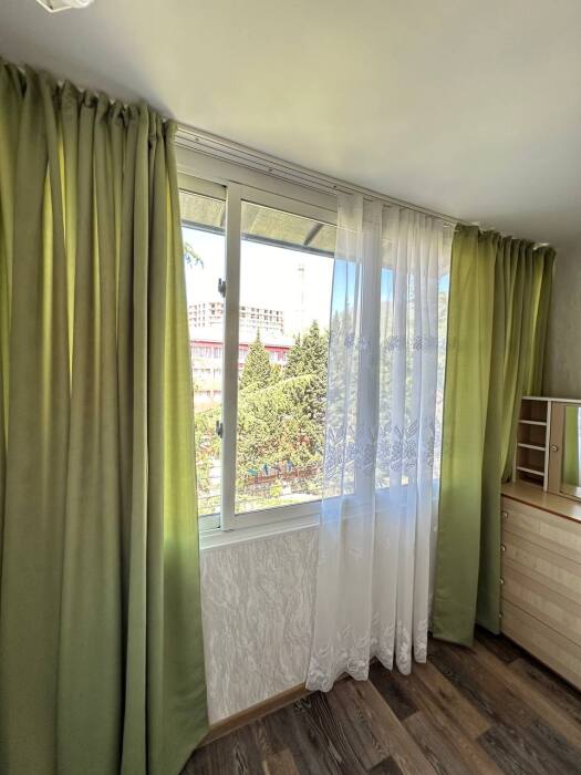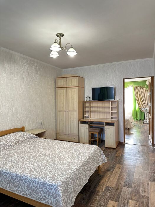 торой вариант — двухкомнатная квартира с капитальным ремонтом 2024 года — идеально подойдет тем, кто ценит новизну интерьера и тишину, так как окна выходят во двор. Несмотря на то что она находится чуть дальше от моря (1100 метров), свежий ремонт и раздельные комнаты обеспечивают высокий уровень приватности и комфорта. Во дворе детская площадка, в шаговой доступности магазины Магнит, Пятерочка, остановка общественного транспорта.