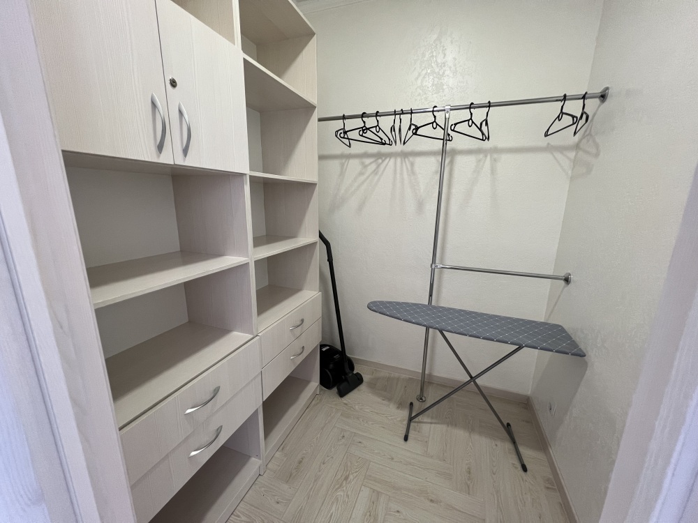 Гардеробная: Постельное белье, полотенца, утюг, гладильная доска, пылесос.