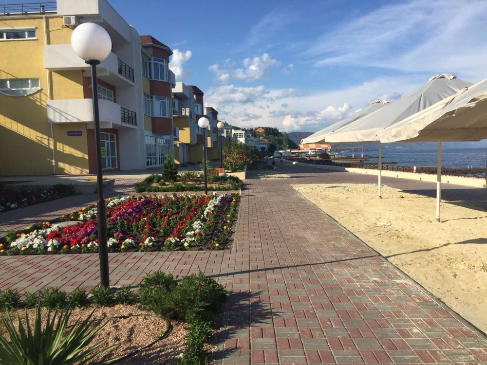 Апартаменты находятся на первой линии жилого комплекса «Парк Ля Мер», идеальное место для тихого, спокойного, семейного, уединённого, ленивого отдыха, в 10 минутах езды (5 км) от центра Алушты.