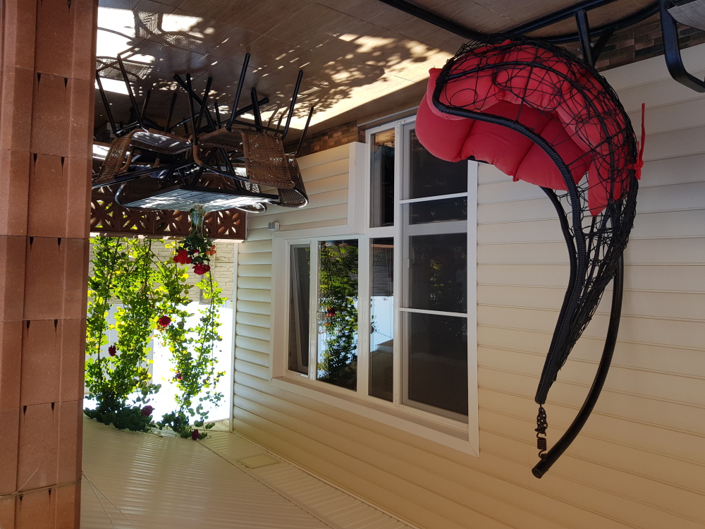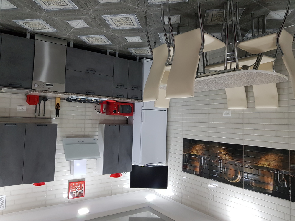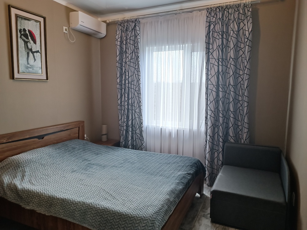 Мебель вся необходимая, современный ремонт, кондиционер в каждой комнате, телевизор, интернет,WI-FI по всей территории, два санузла , стиральная машинка-автомат, посудомоечная машина, выход из кухни на террасу,что очень удобно, огороженный двор, мангал, постельное белье, полотенца, посуда, автоматические ворота. Все есть для спокойного, комфортного отдыха.