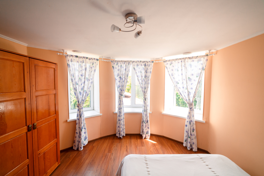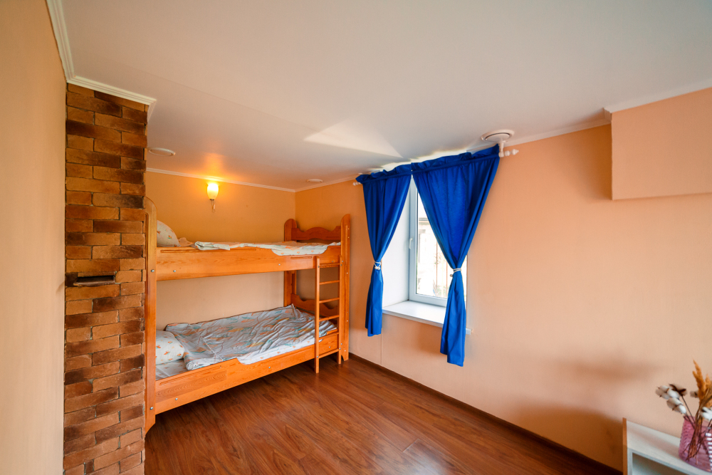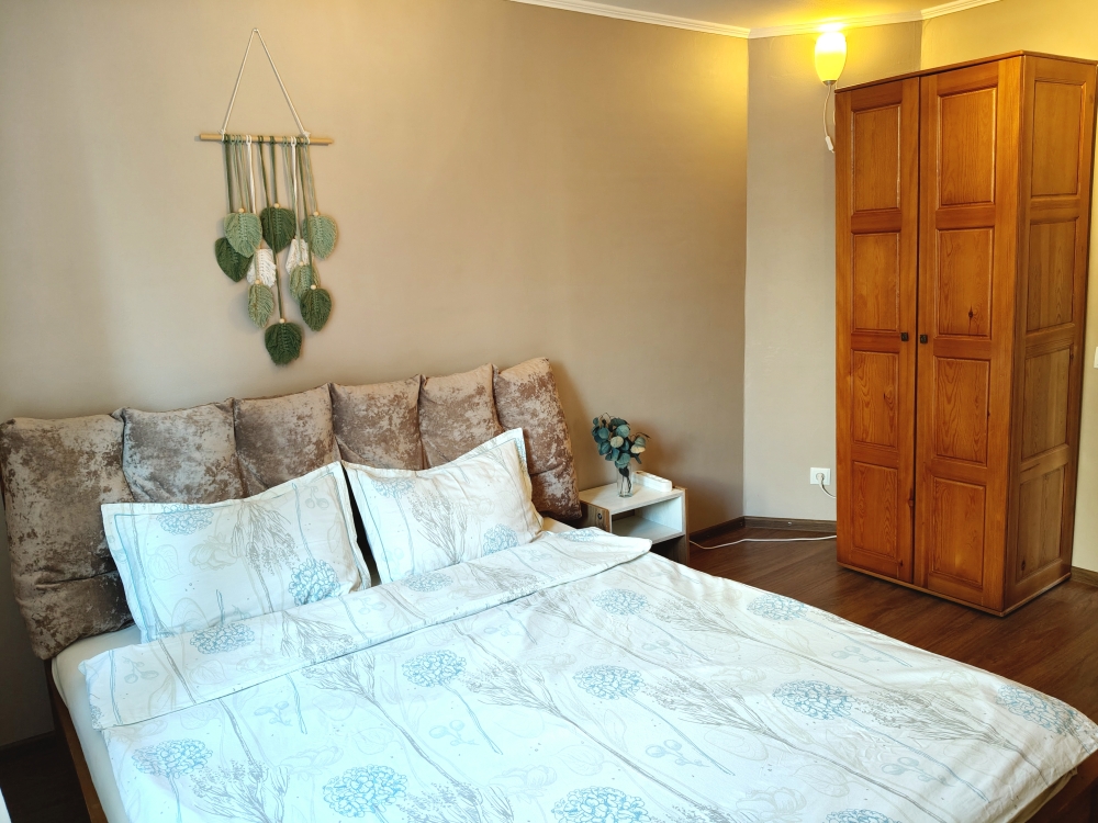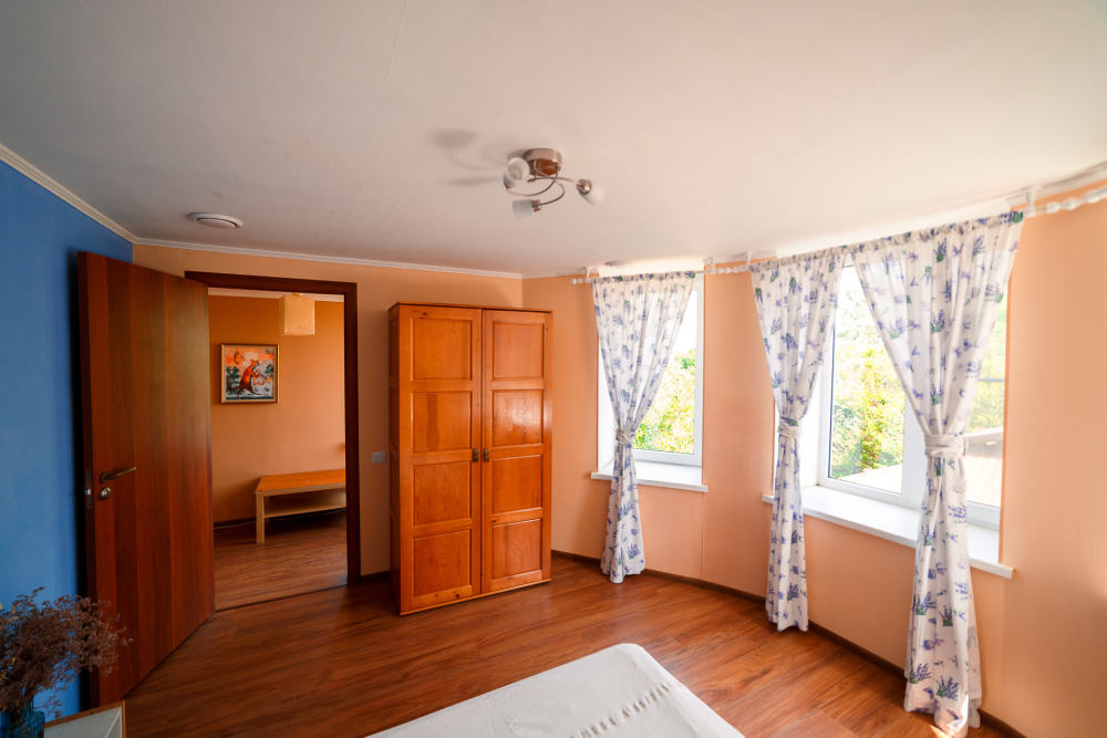 В двух спальнях двуспальные кровати, в третьей - двуспальная и двухъярусная полуторная кровать, которую обожают дети!