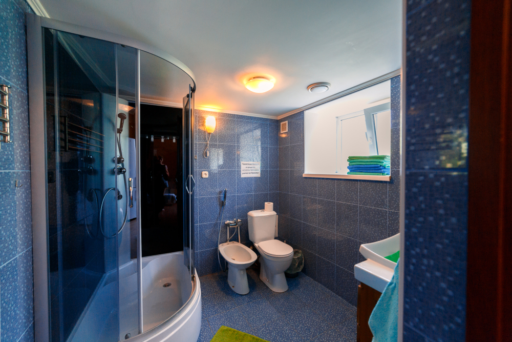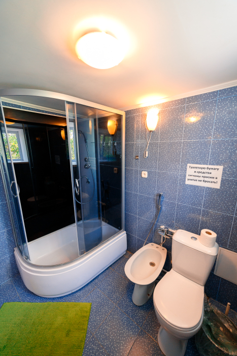 Холл с диванчиками, столиками, 3 спальни, санузел с душевой кабиной. Вы сможете сами готовить - есть мини-кухня с индукционной плитой и посудой, большим холодильником.