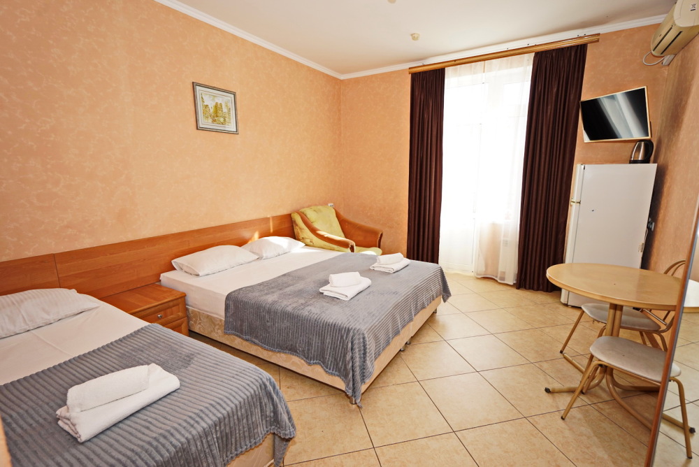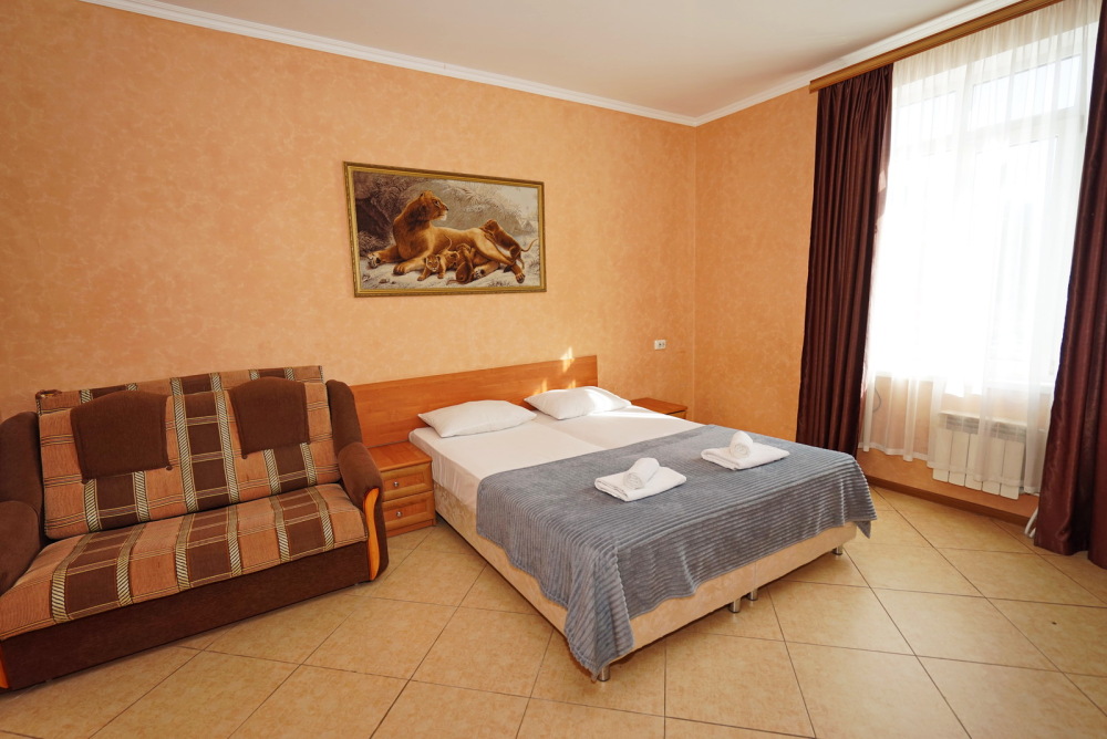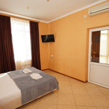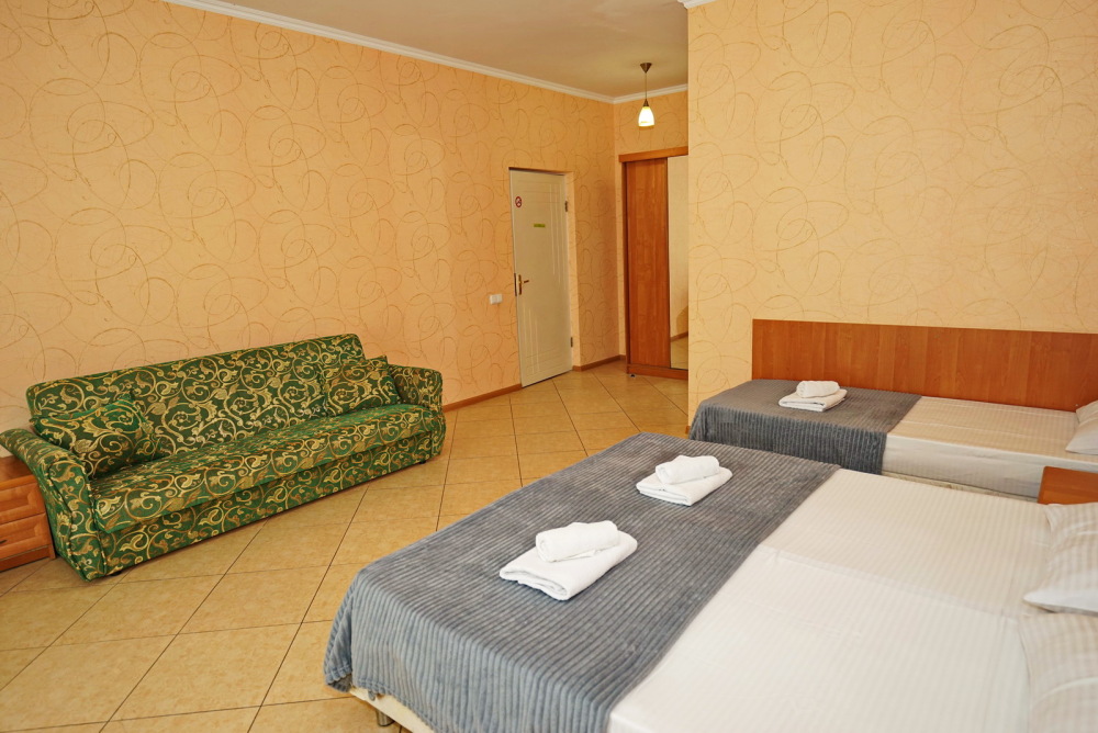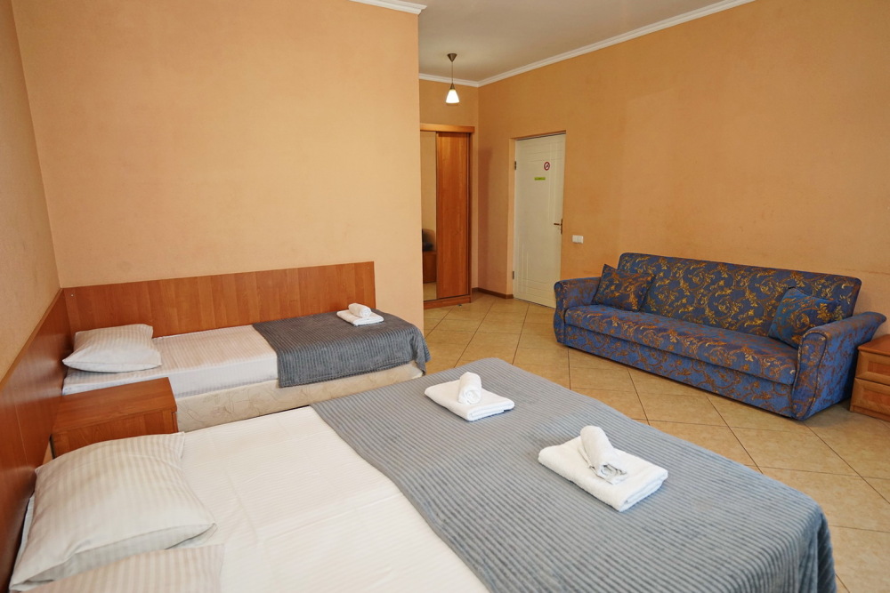 Улучшенные стандарты отличаются наличием собственного с/узла в пределах комнаты. Жилая комната со всей необходимой мебелью; ТВ, сплит-система, электрический чайник, холодильник, шкаф; двуспальные кровати и односпальные, диван-кровать, с/узел с душевой кабиной, феном и банными принадлежностями, сейф.