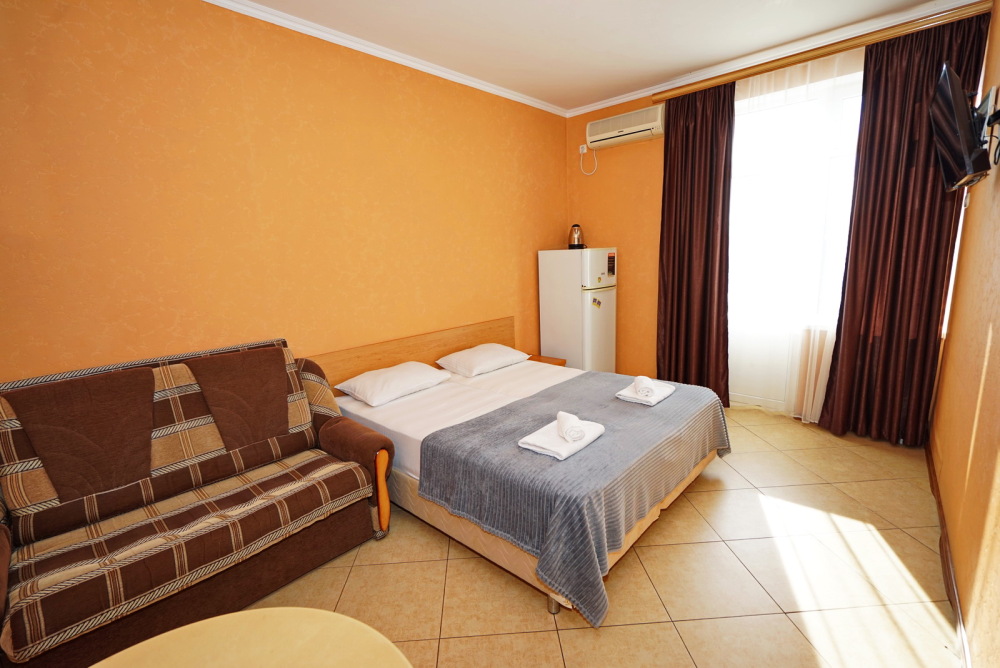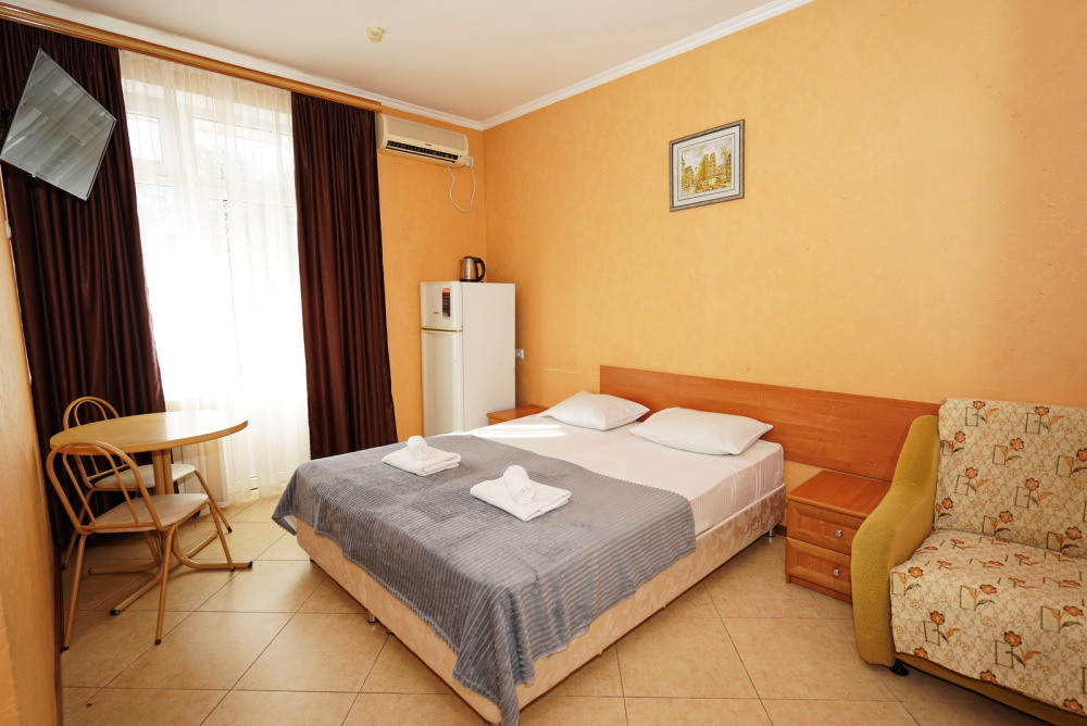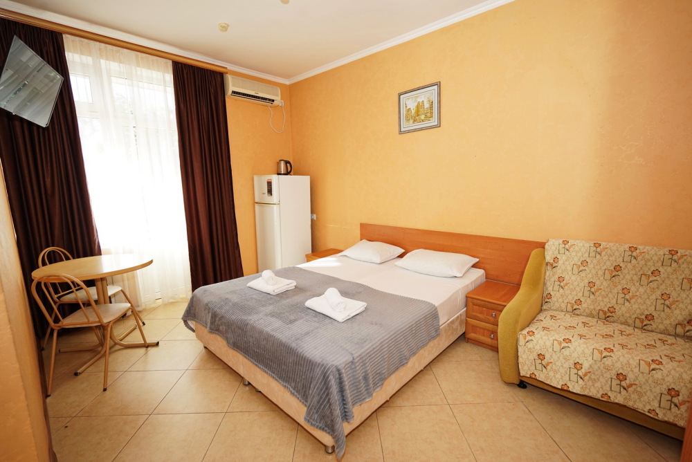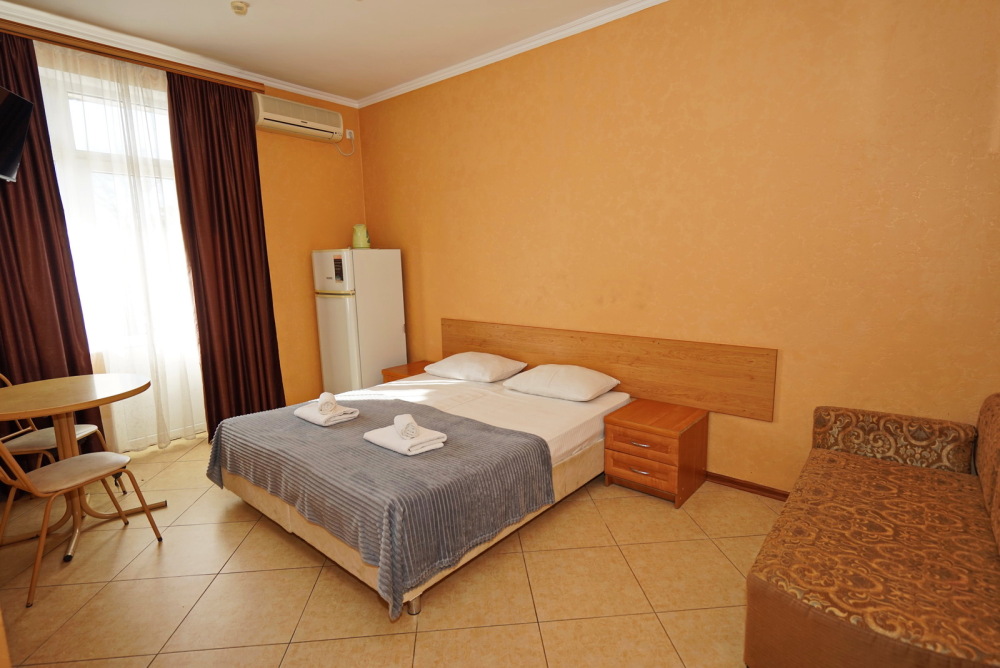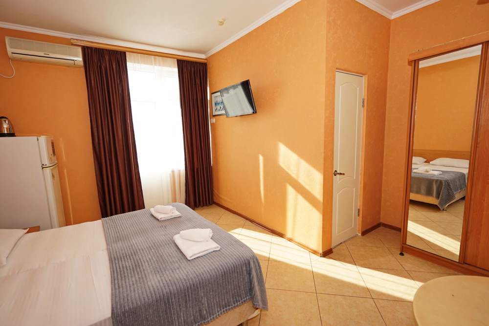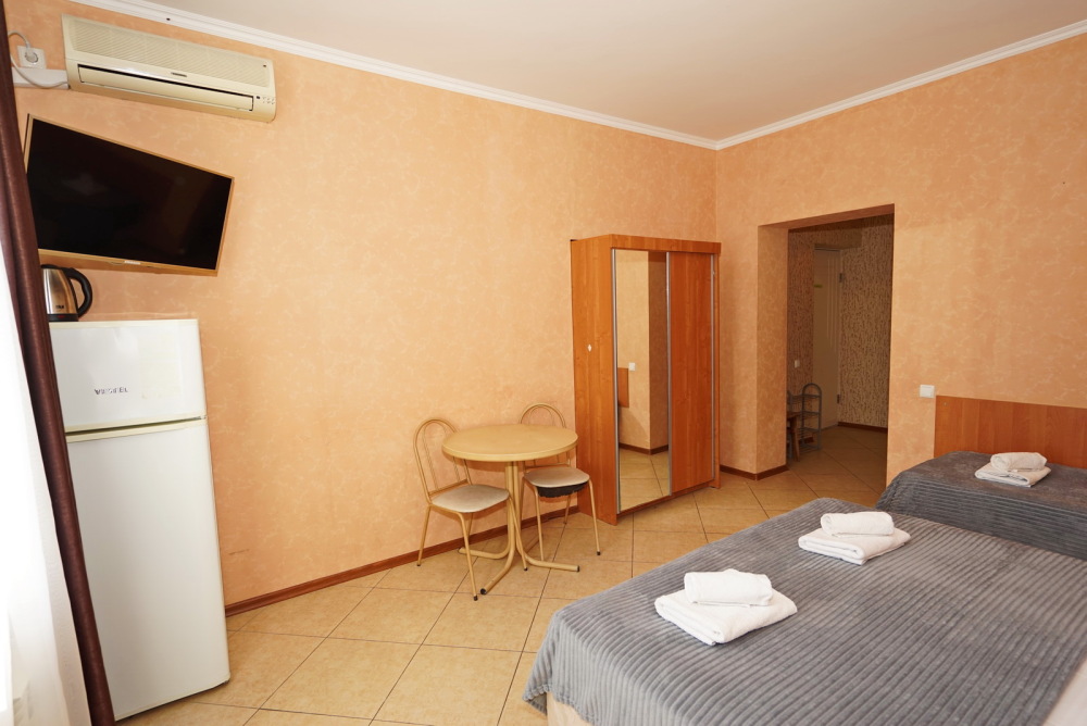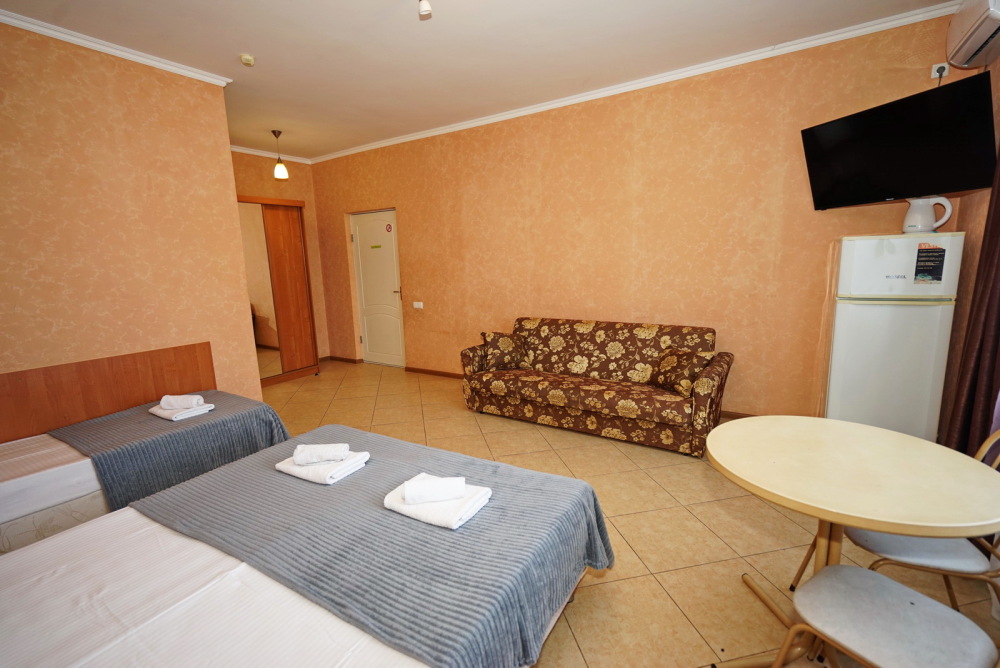 Улучшенные стандарты отличаются наличием собственного с/узла в пределах комнаты. Жилая комната со всей необходимой мебелью; ТВ, сплит-система, электрический чайник, холодильник, шкаф; двуспальная кровать и односпальная или кресло-кровать; с/узел с душевой кабиной, феном и банными принадлежностями, сейф.