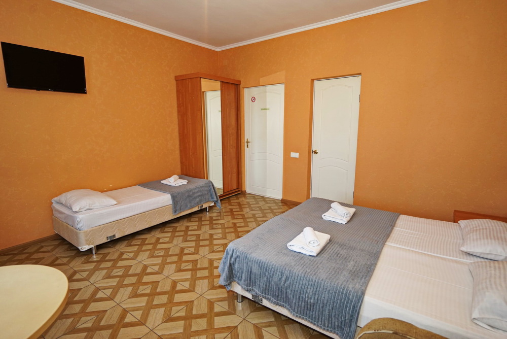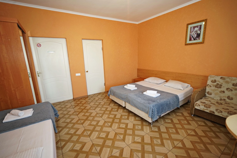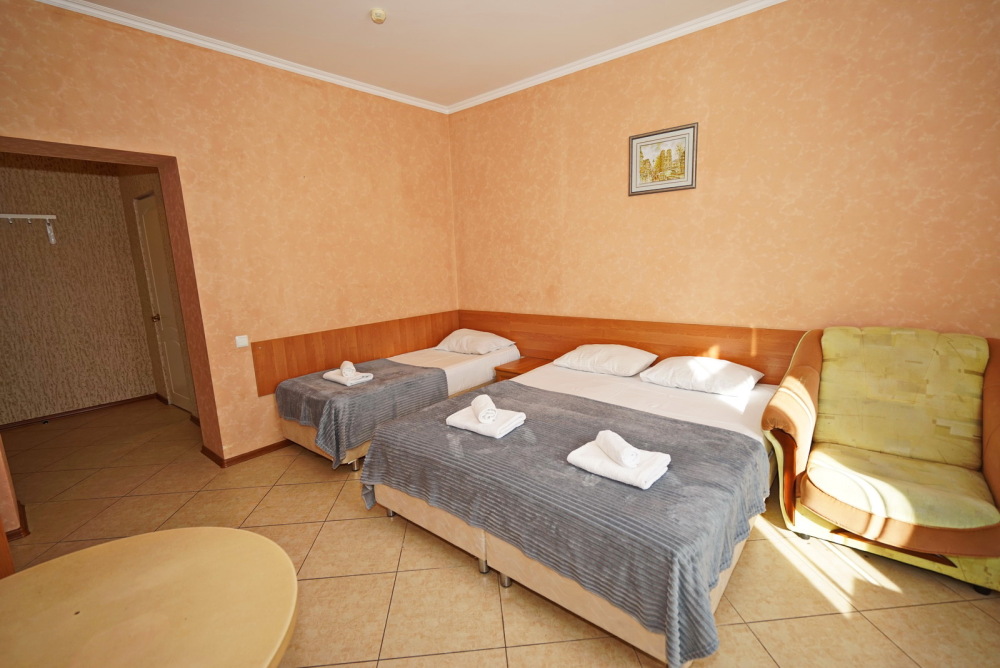 Улучшенные стандарты отличаются наличием собственного с/узла в пределах комнаты. Жилая комната со всей необходимой мебелью; ТВ, сплит-система, электрический чайник, холодильник, шкаф; двуспальные кровати и односпальные и диван-кровать , с/узел с душевой кабиной, феном и банными принадлежностями, сейф.