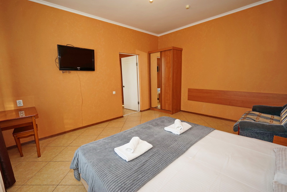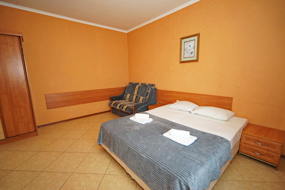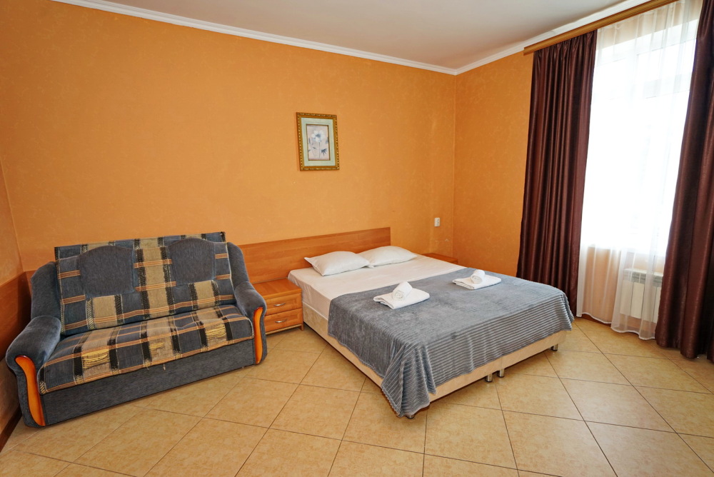 Улучшенные стандарты отличаются наличием собственного с/узла в пределах комнаты. Жилая комната со всей необходимой мебелью; ТВ, сплит-система, электрический чайник, холодильник, шкаф; двуспальная кровать и односпальная, кресло-кровать ; с/узел с душевой кабиной, феном и банными принадлежностями, сейф.
