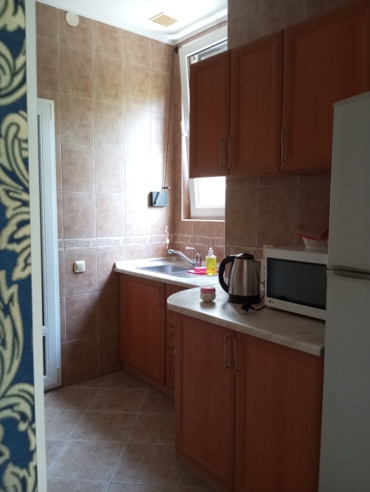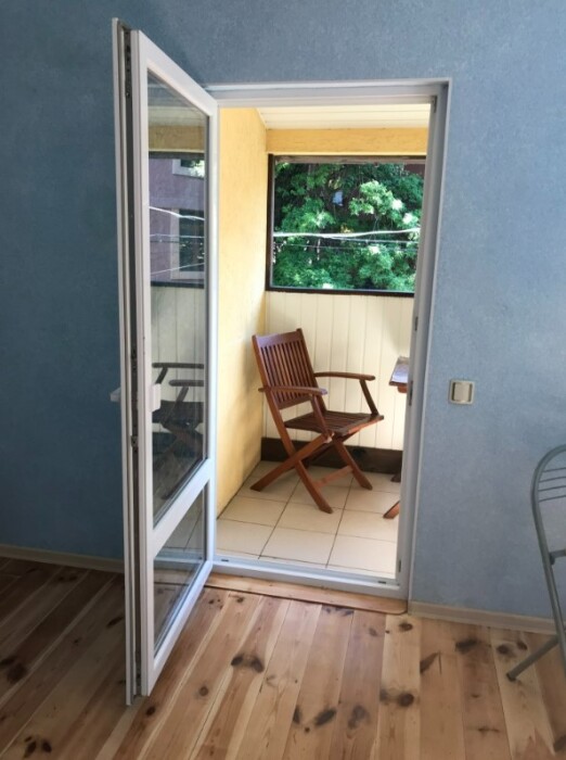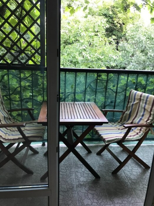 В номере деревянные полы. Идеален для проживания вдвоем, можно с ребенком (есть диван). Уютный балкон с боковым видом на море и зеленую зону.