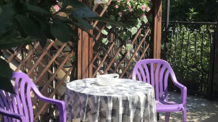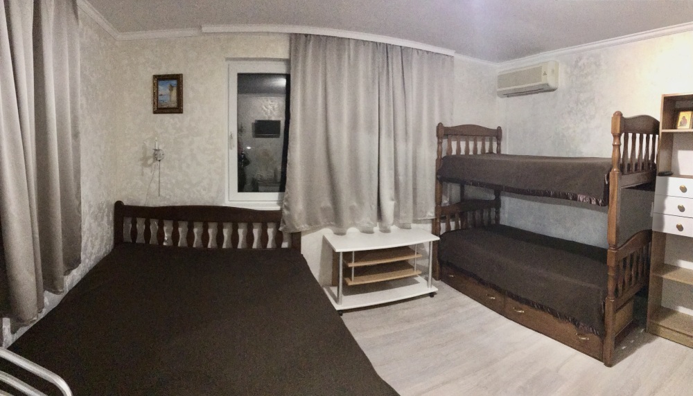 Особенность номера - он с входом с верхней площадки, окно полноценное и выходит на клумбу и улицу( не шумно). Перед входом в номер столики и кухня общая.