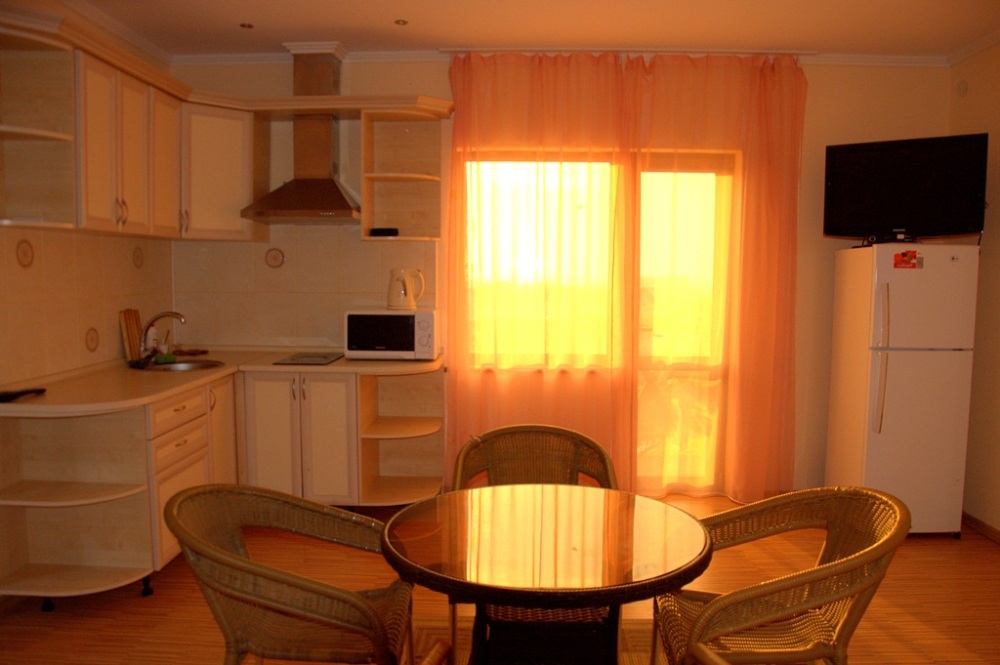 Апартаменты - двухкомнатный номер с индивидуальной кухней находится на 2 или 3 этаже с балконом и видом на море.